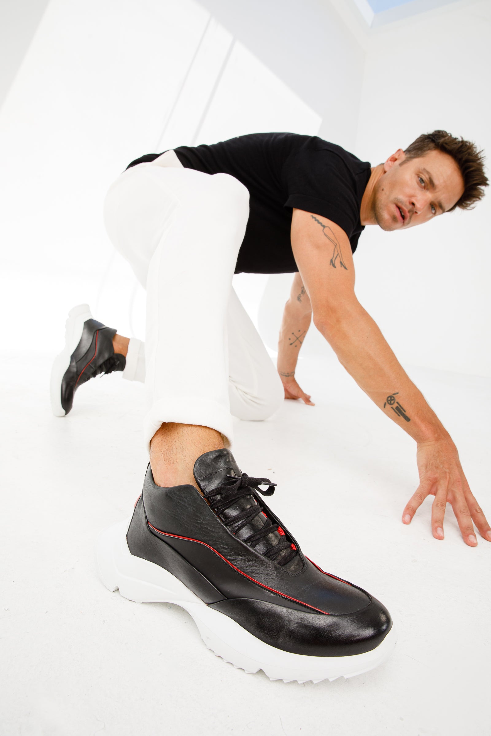 تمتع بأناقة مع حذاء Graton الرياضي الجلدي الأسود للرجال