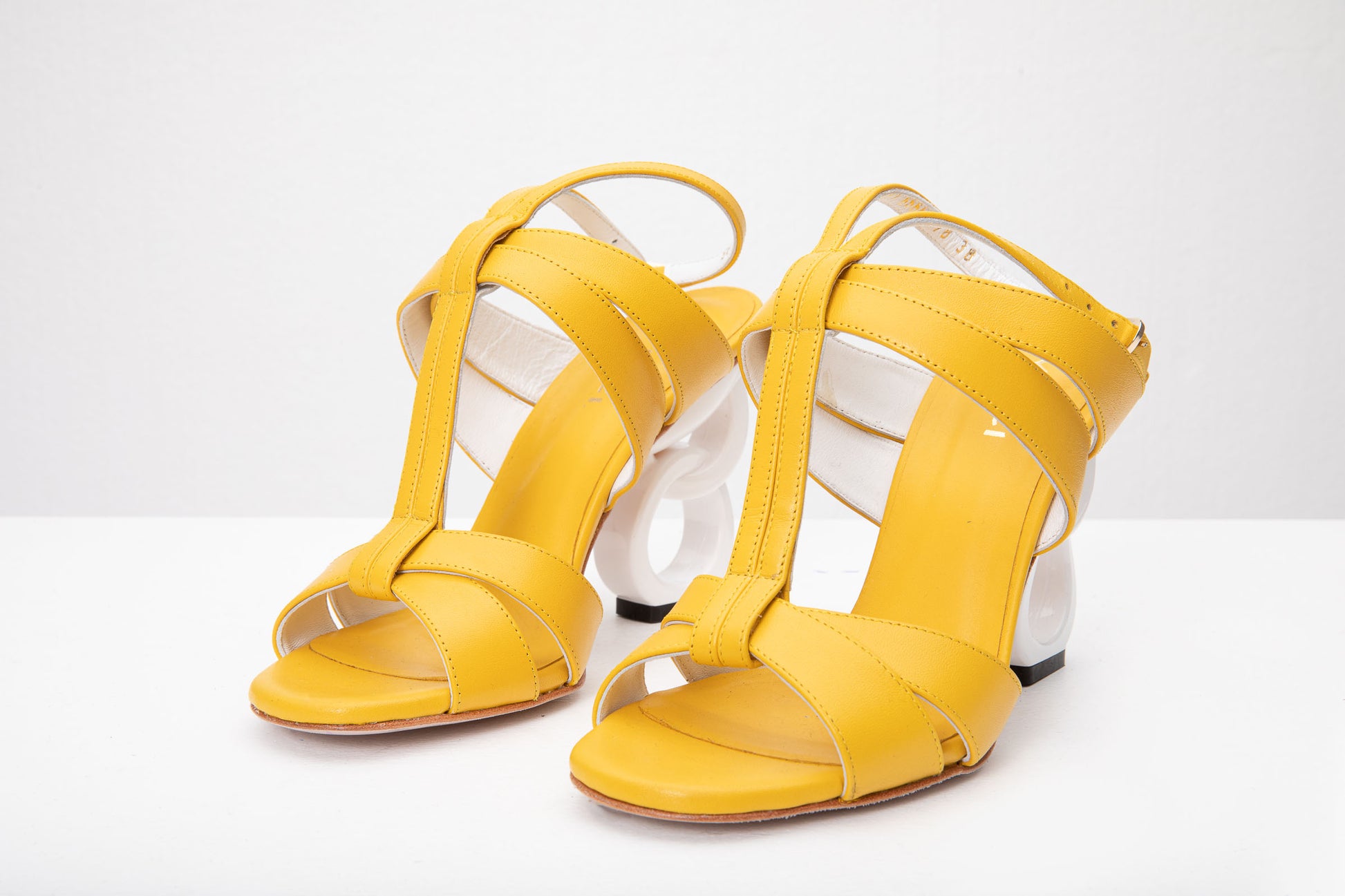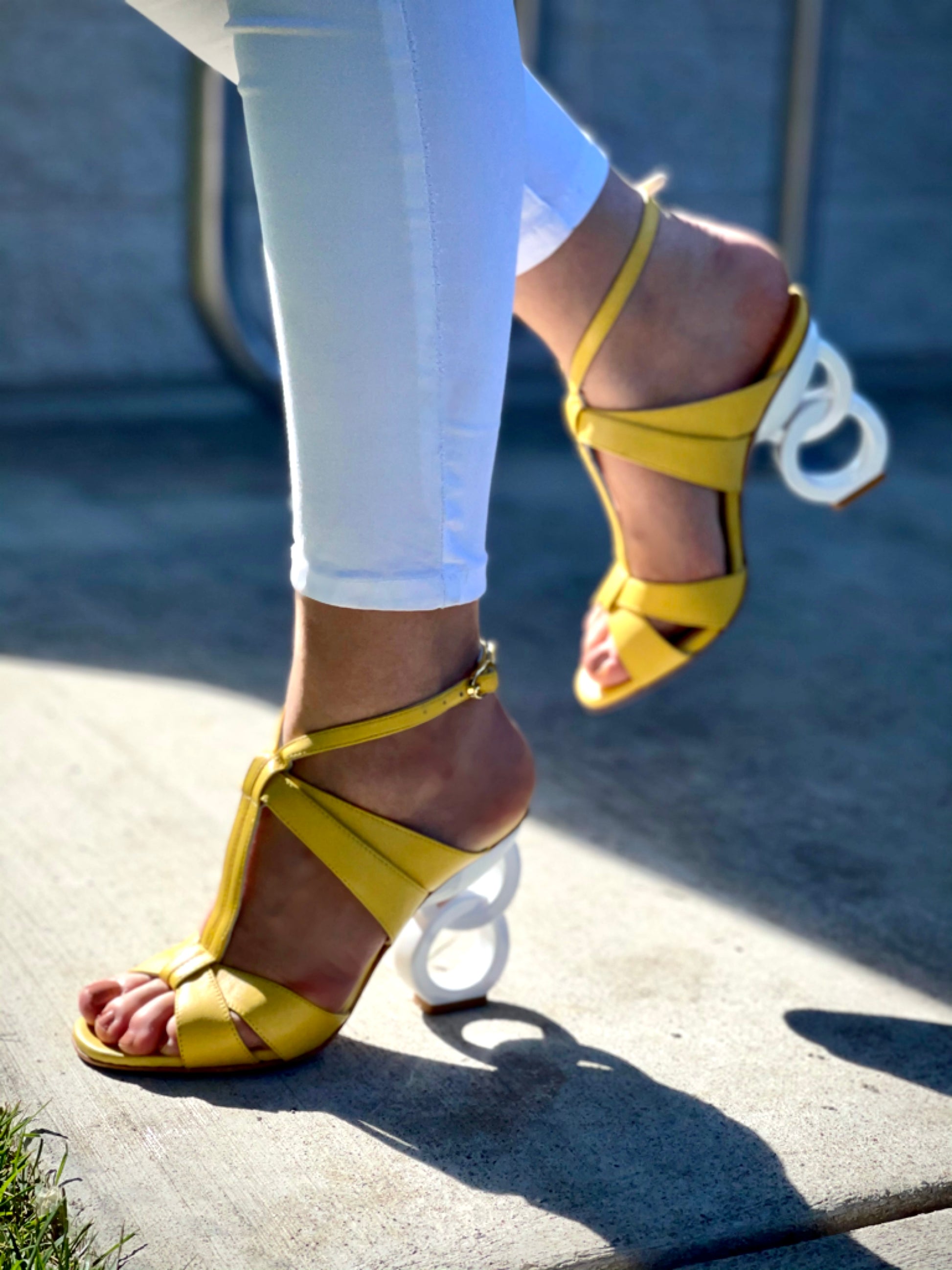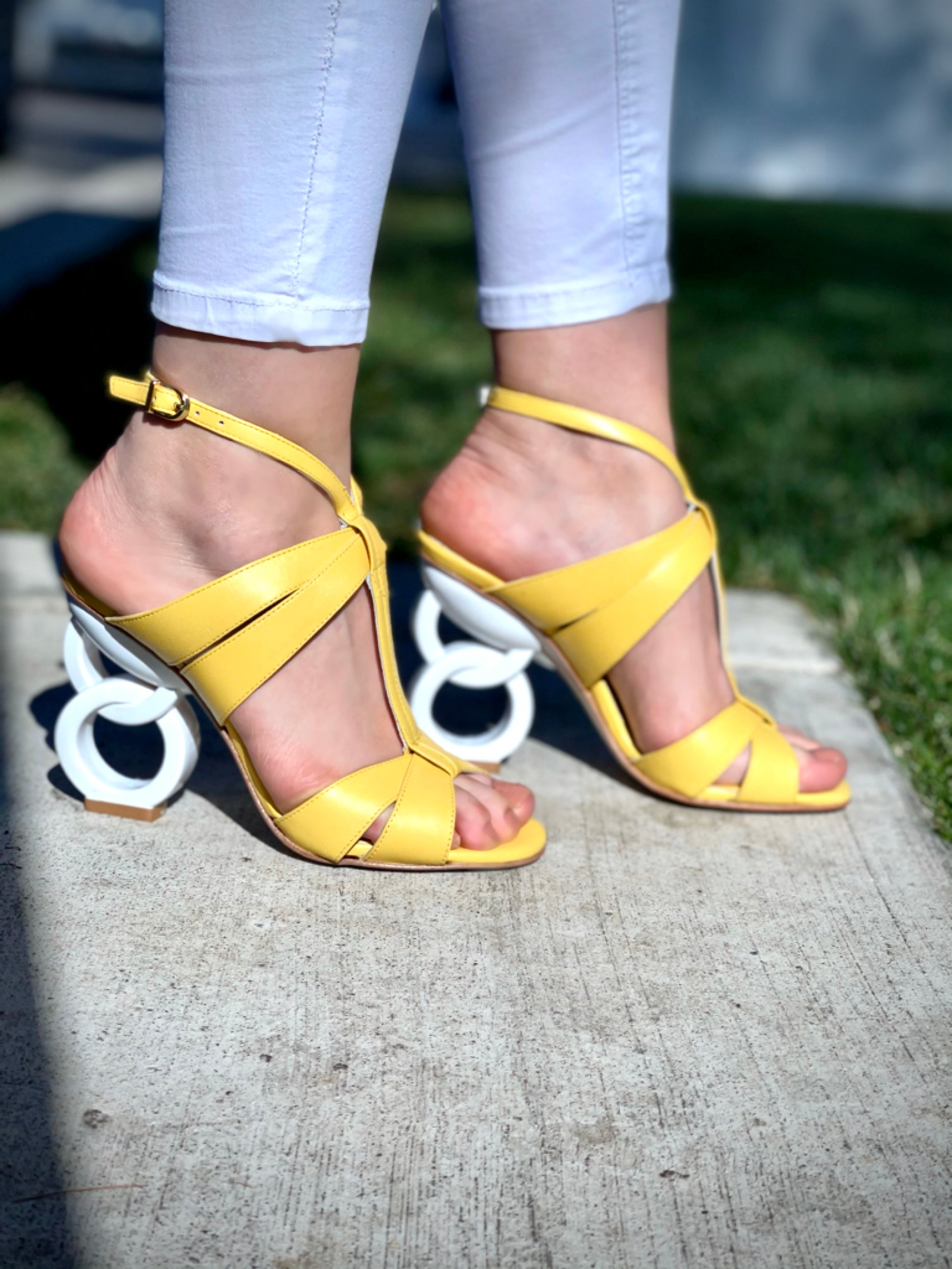 أناقة أحادية اللون مذهلة: صندل Duffryn الأصفر المصنوع من الجلد للنساء هو احتفال بالأناقة أحادية اللون، حيث يحتل اللون الأصفر الجريء مركز الصدارة.