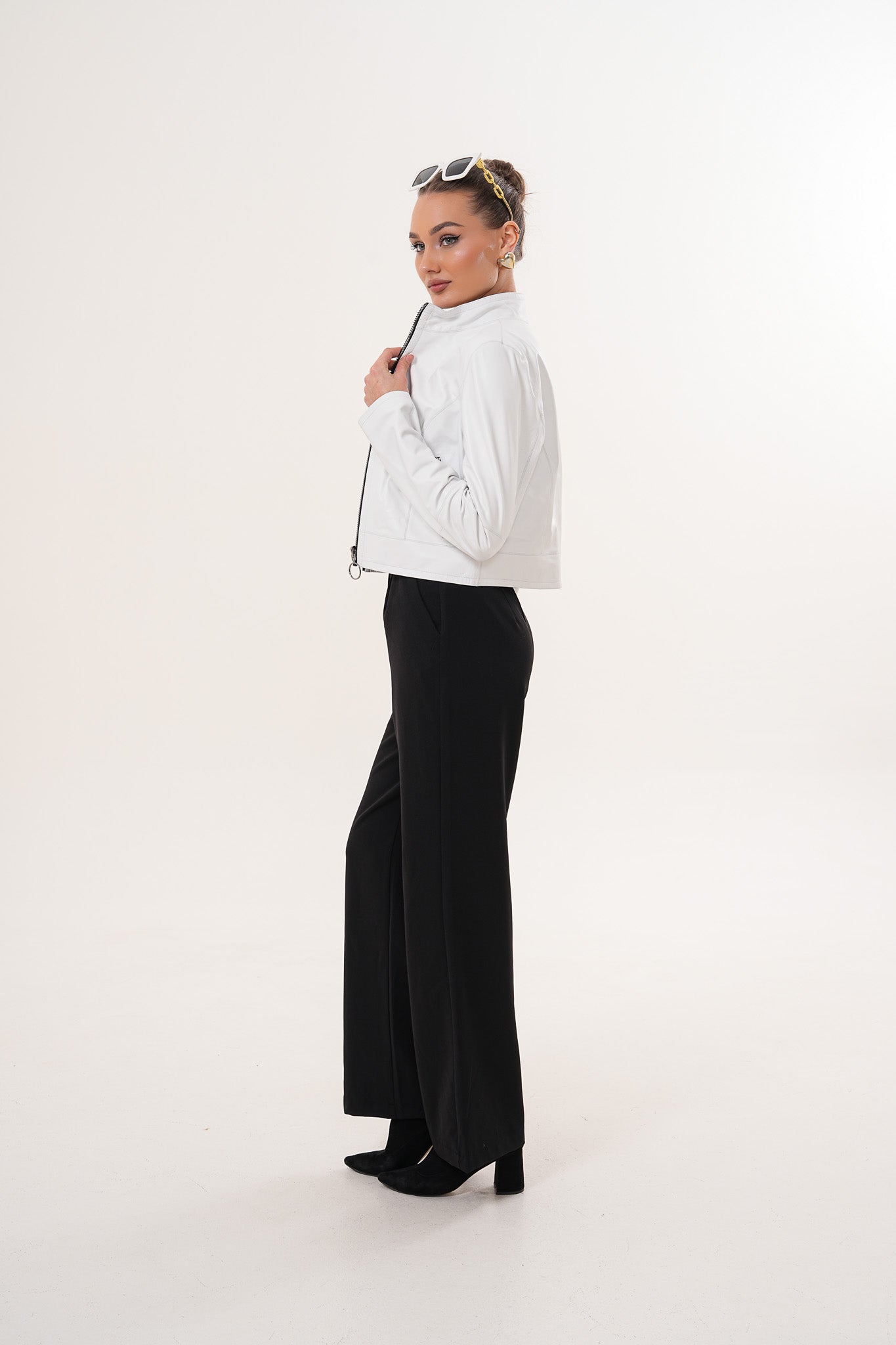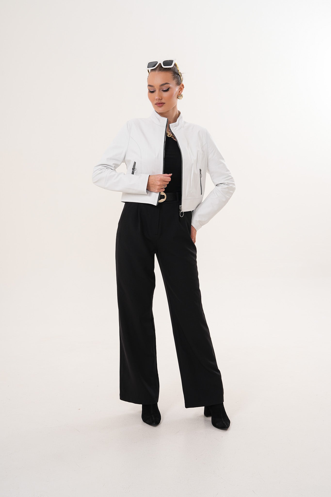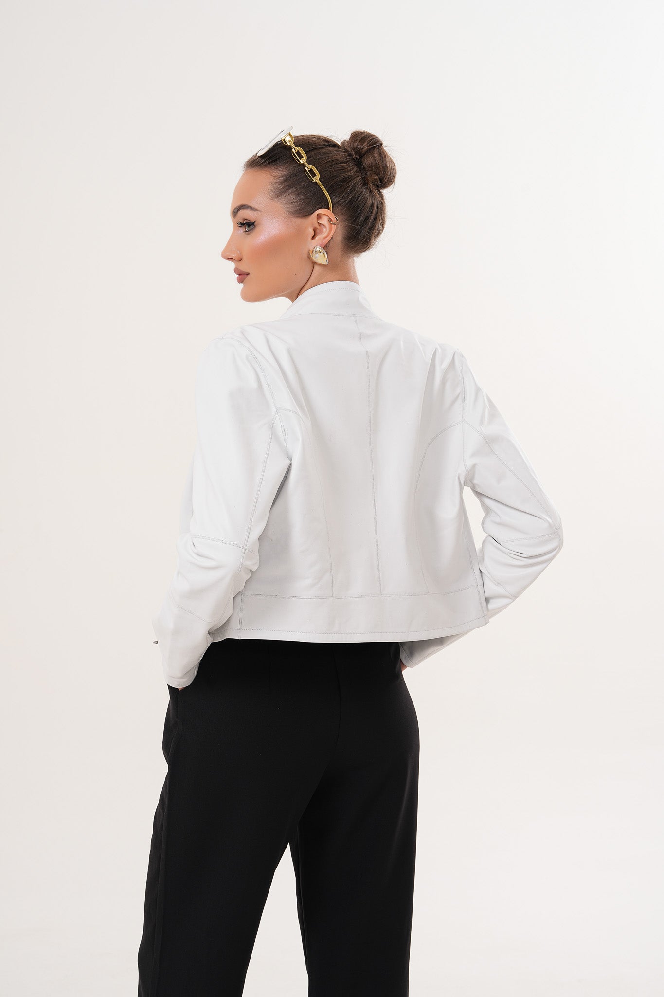 سترة Elvaris الجلدية البيضاء النسائية القابلة للارتداء من الجهتين