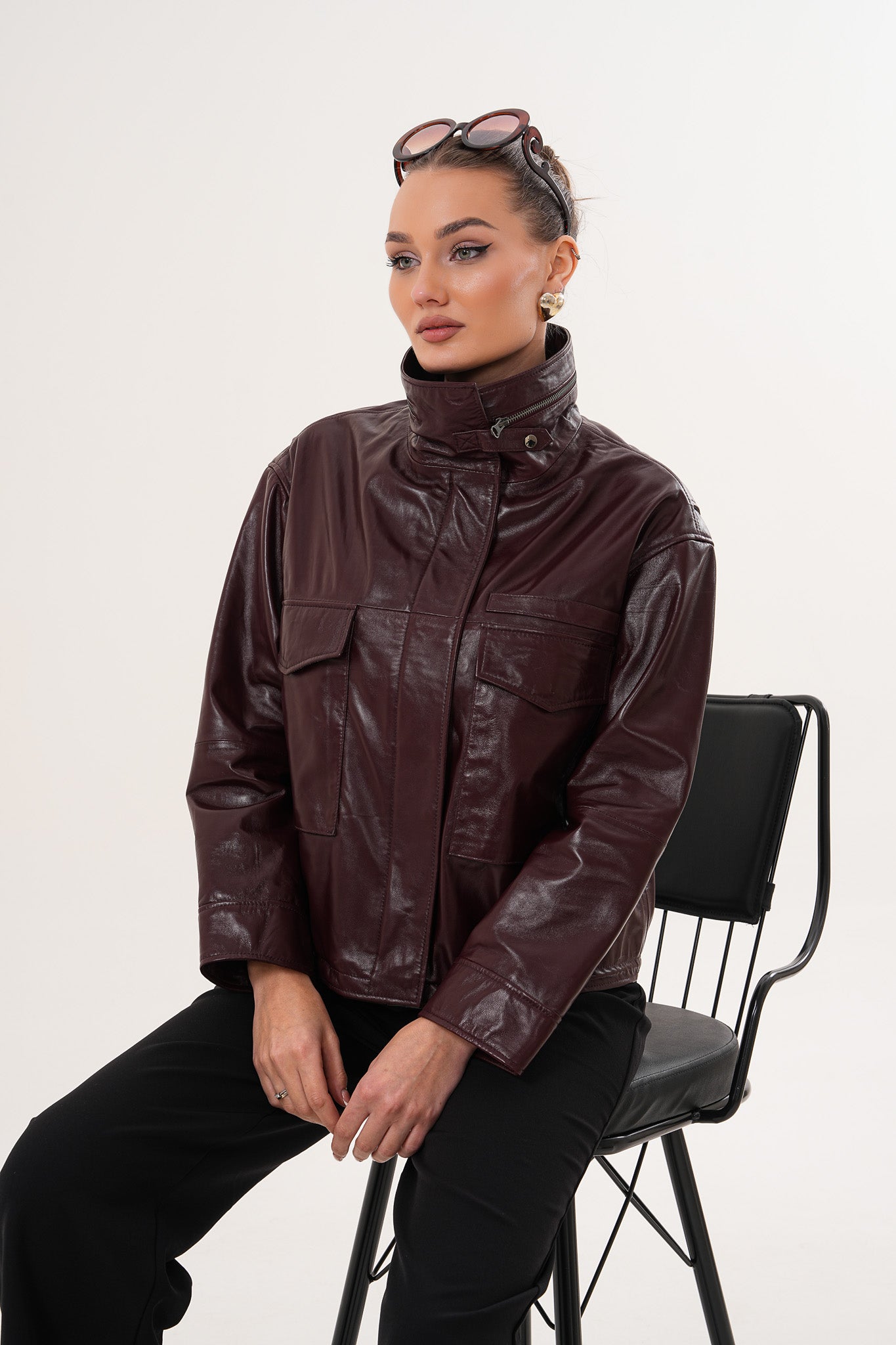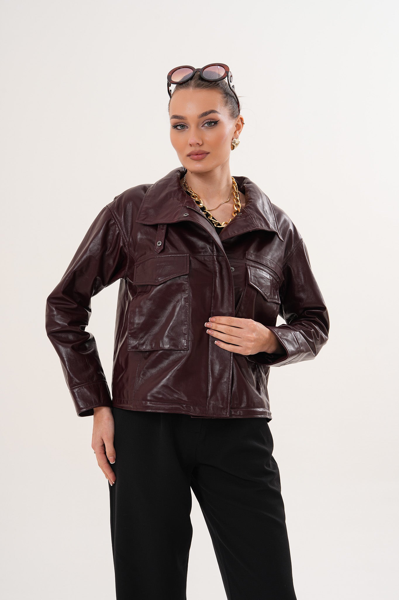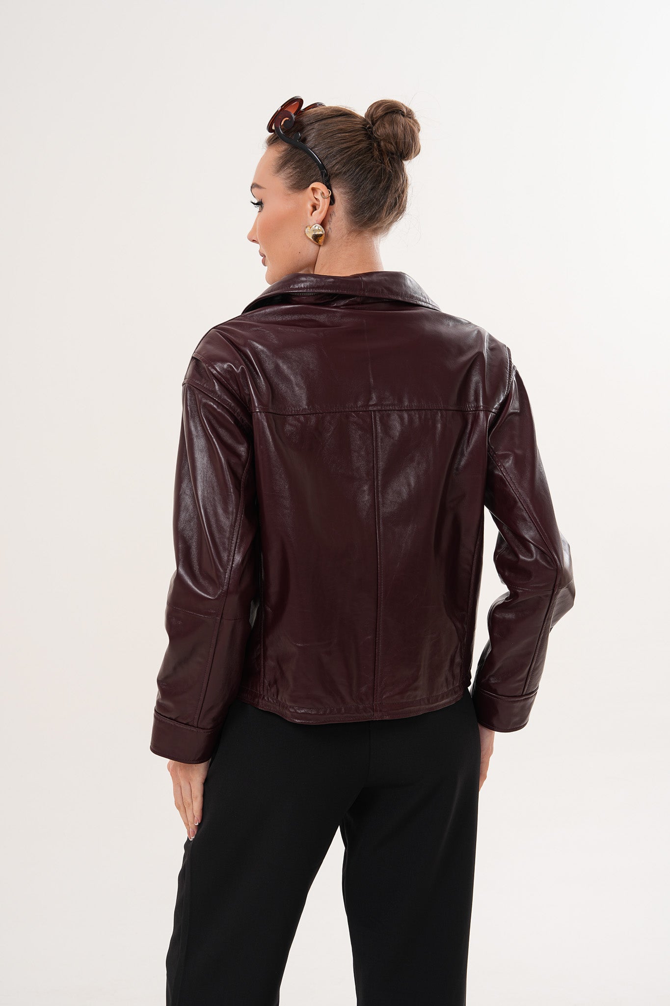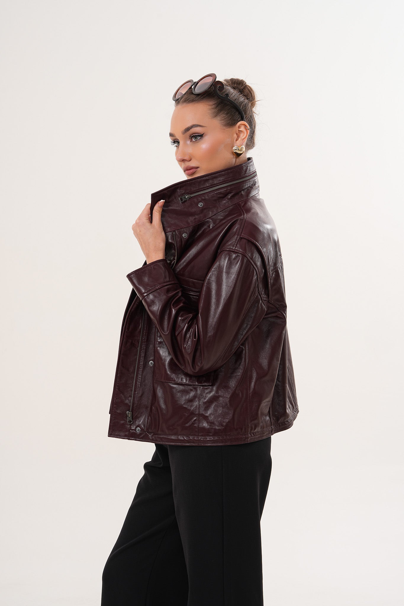 سترة نسائية جلدية بلون بورغندي من The Ravelyn