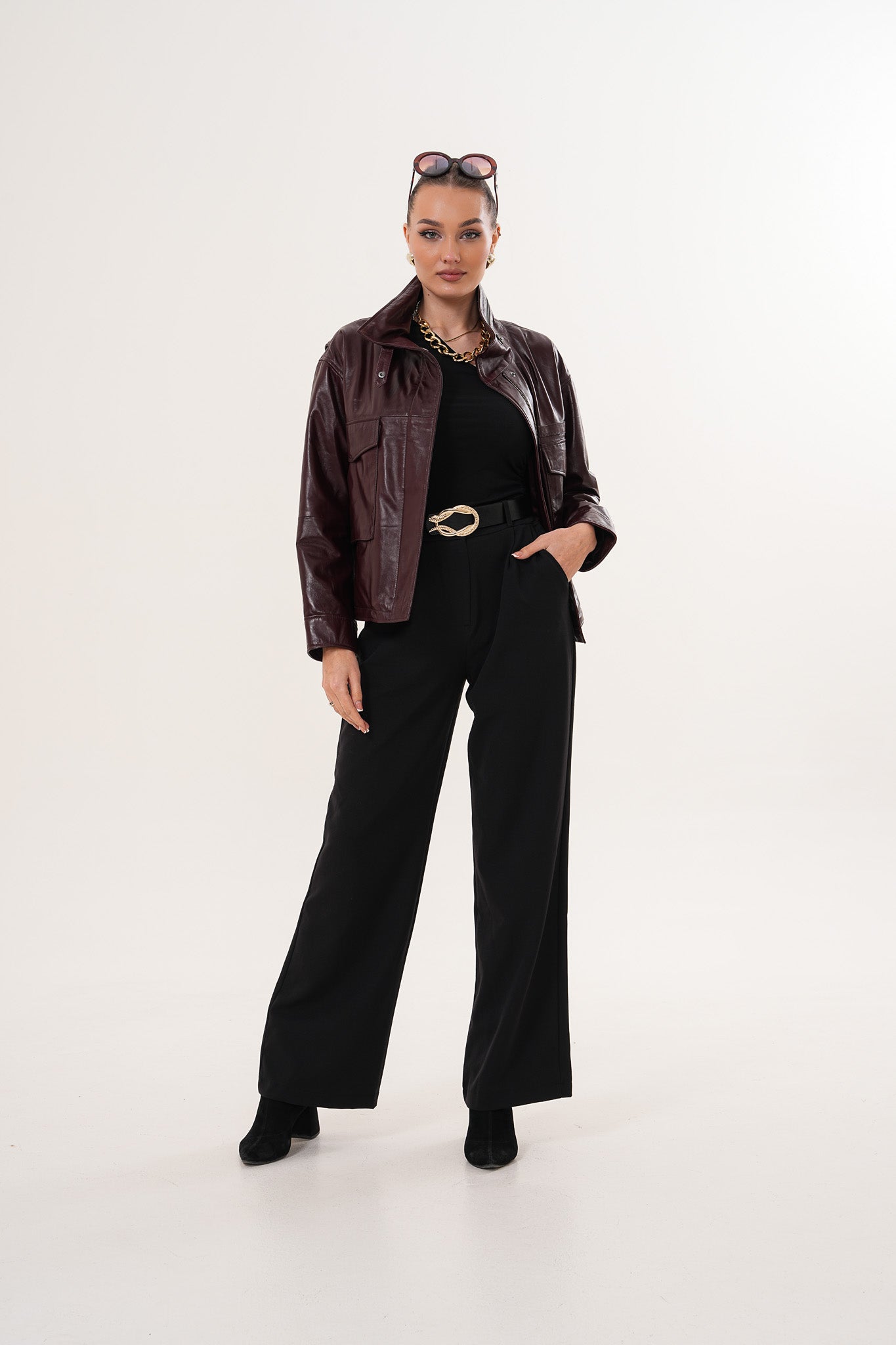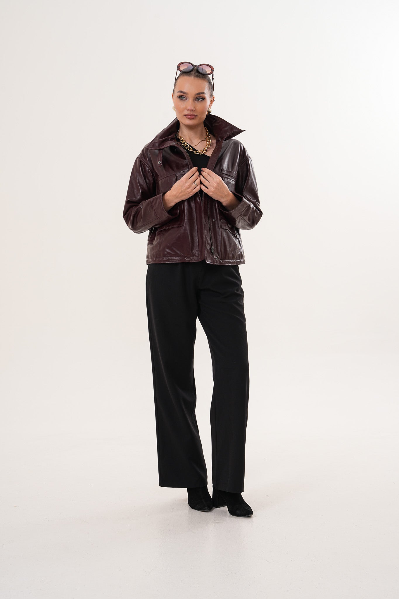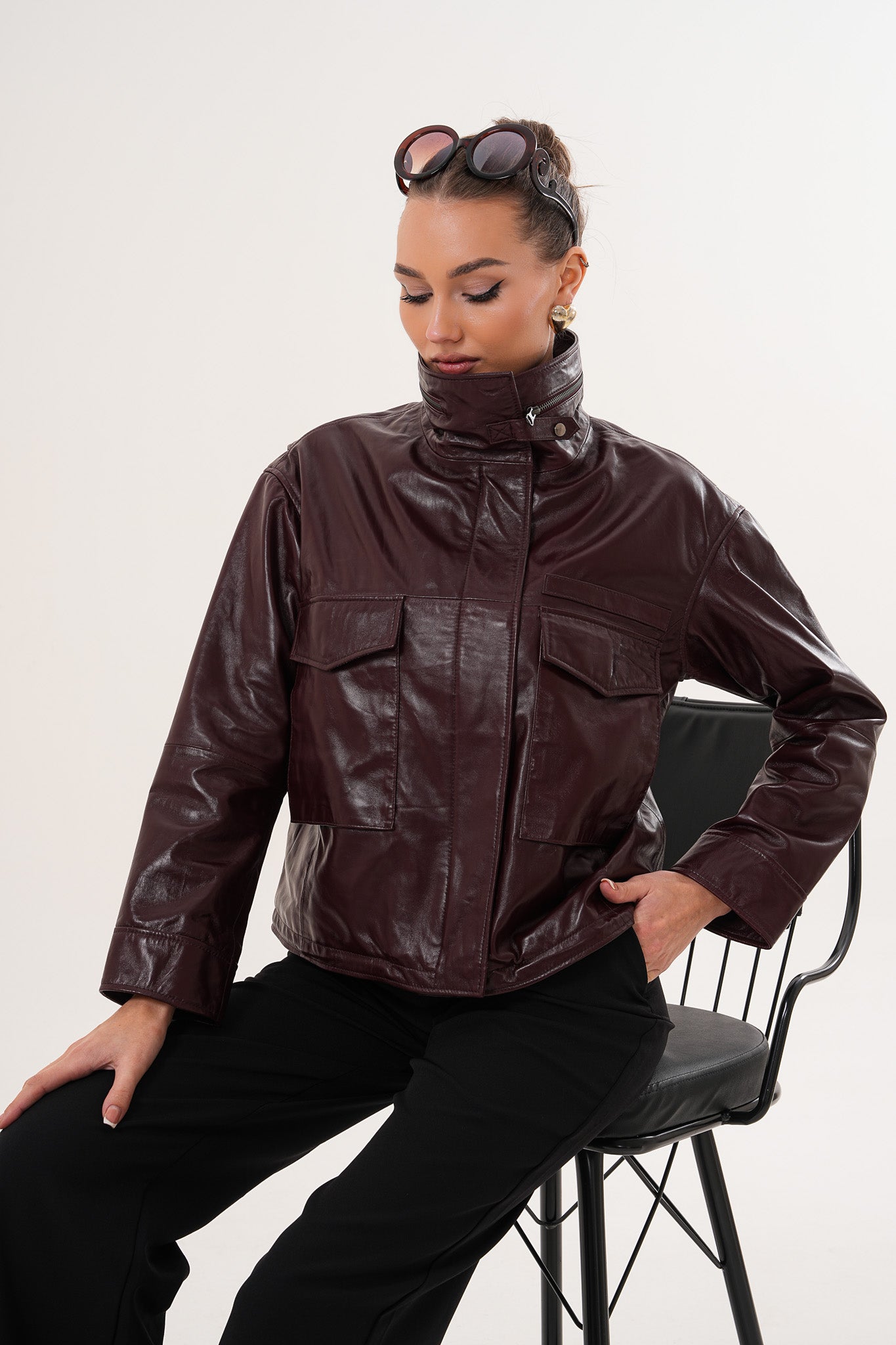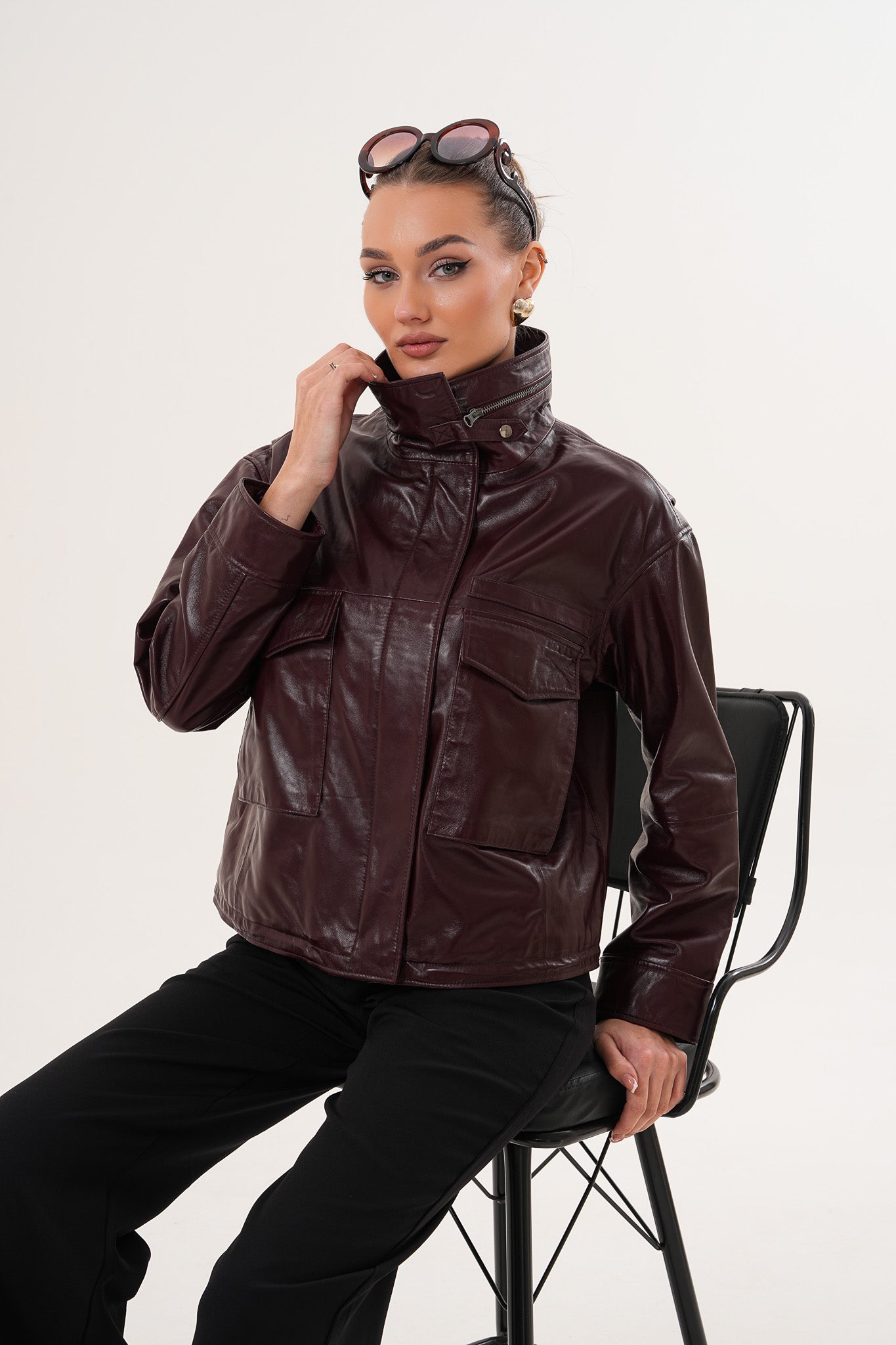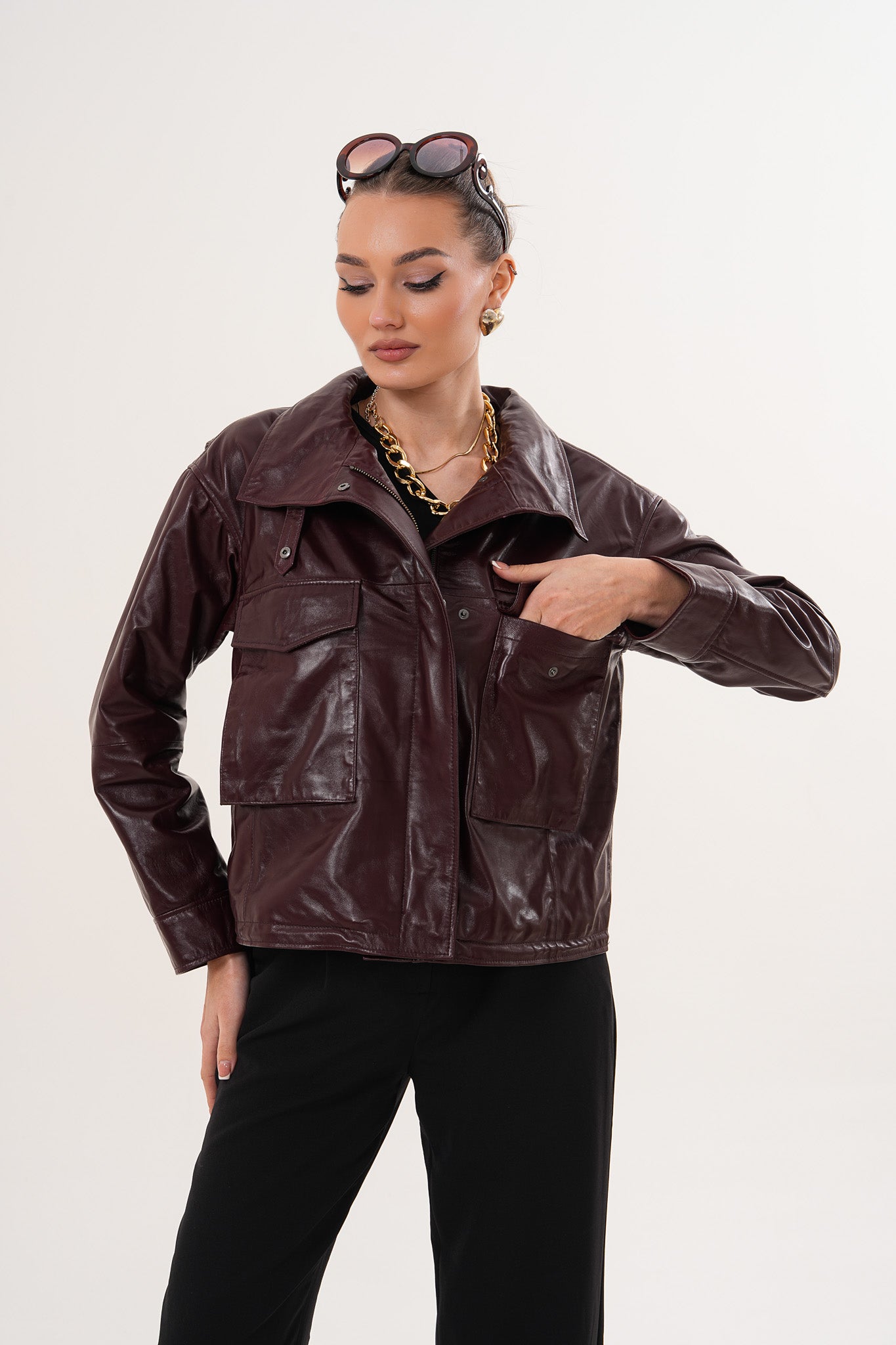 سترة نسائية جلدية بلون بورغندي من The Ravelyn