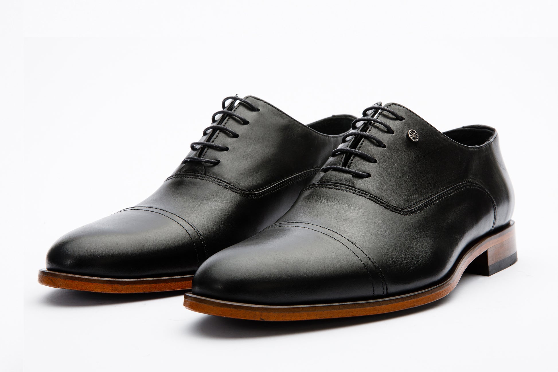 غامباها حذاء أوكسفورد كاب تو ربع بروغ من الجلد الأسود - أناقة راقية