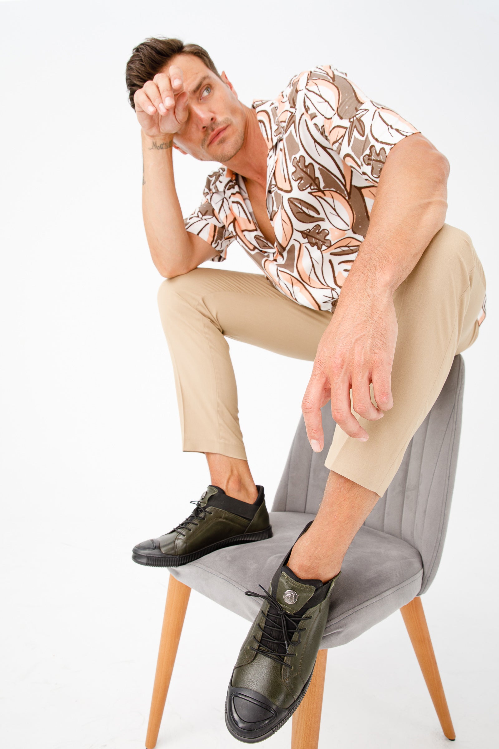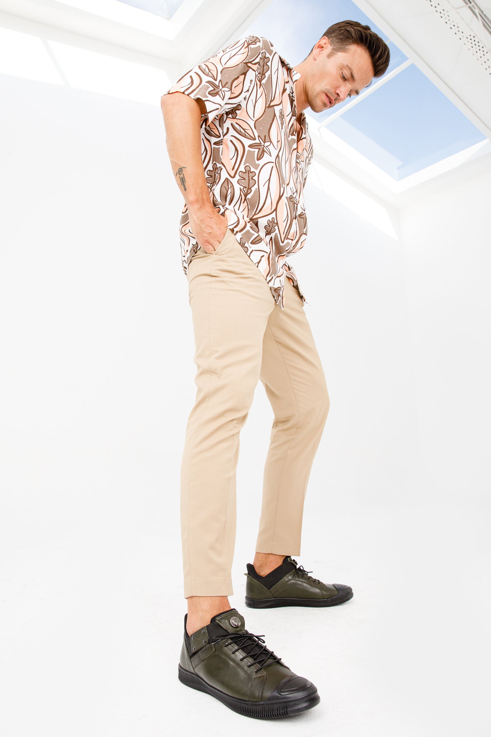 - تصميم سهل الارتداء مع شريط مطاطي: يتميز الحذاء بشريط مطاطي حول الكاحل، مما يوفر تجربة ارتداء سلسة وأنيقة. يضيف الشريط الجلدي الأخضر الأنيق لمسة من الرقي إلى التصميم العام.