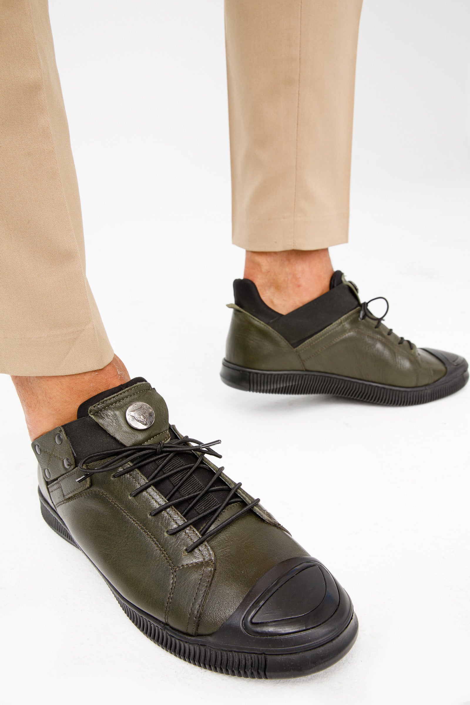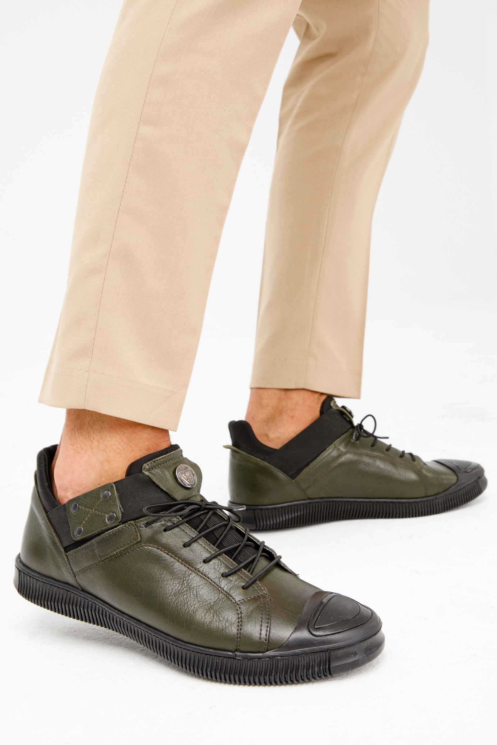 حذاء رياضي رجالي من الجلد باللون الأخضر مومباي للبيع النهائي!
