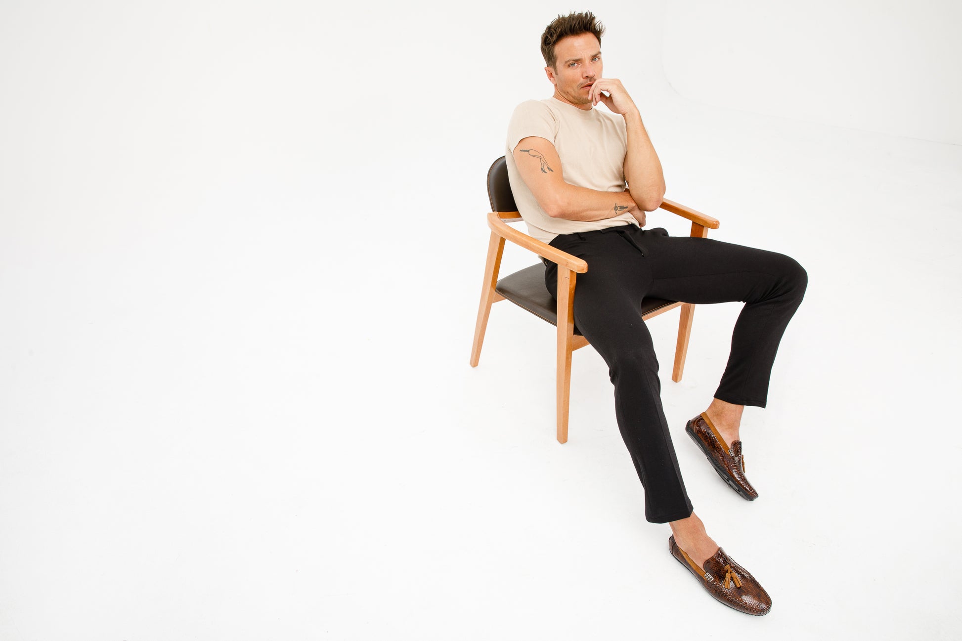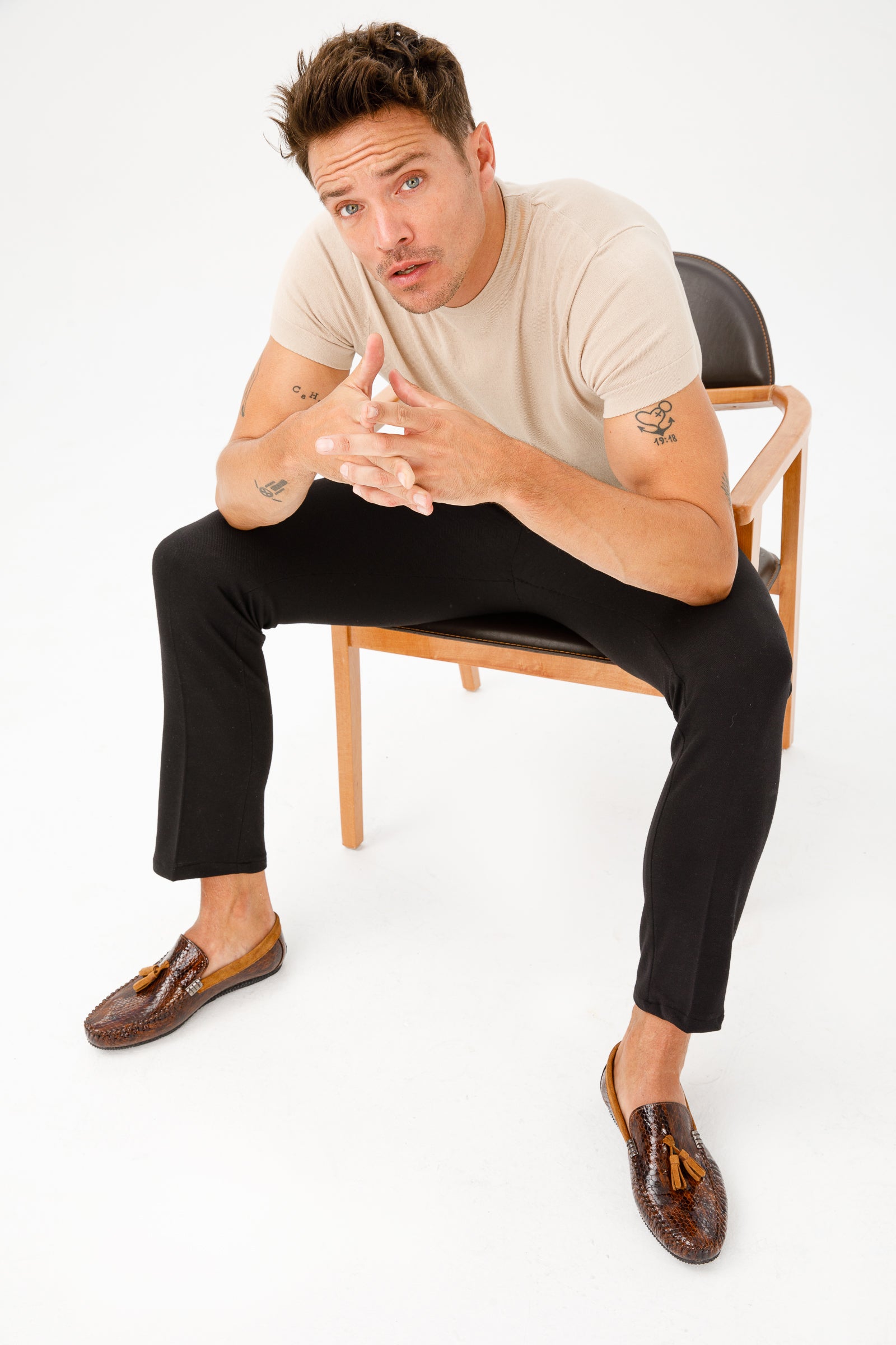 حذاء لوفر للرجال من جلد باتنت تان كوردوفا مع دلايات - بيع نهائي!