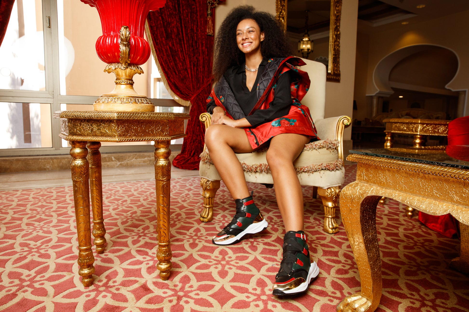 - إضافة لمسة من السحر، تتميز الحذاء بأربطة من القماش لا توفر فقط تثبيتًا آمنًا بل تساهم أيضًا في الجاذبية العامة للحذاء. يجمع مزيج أربطة القماش والتفاصيل الذهبية بين جاذبية بصرية لا تقاوم.
