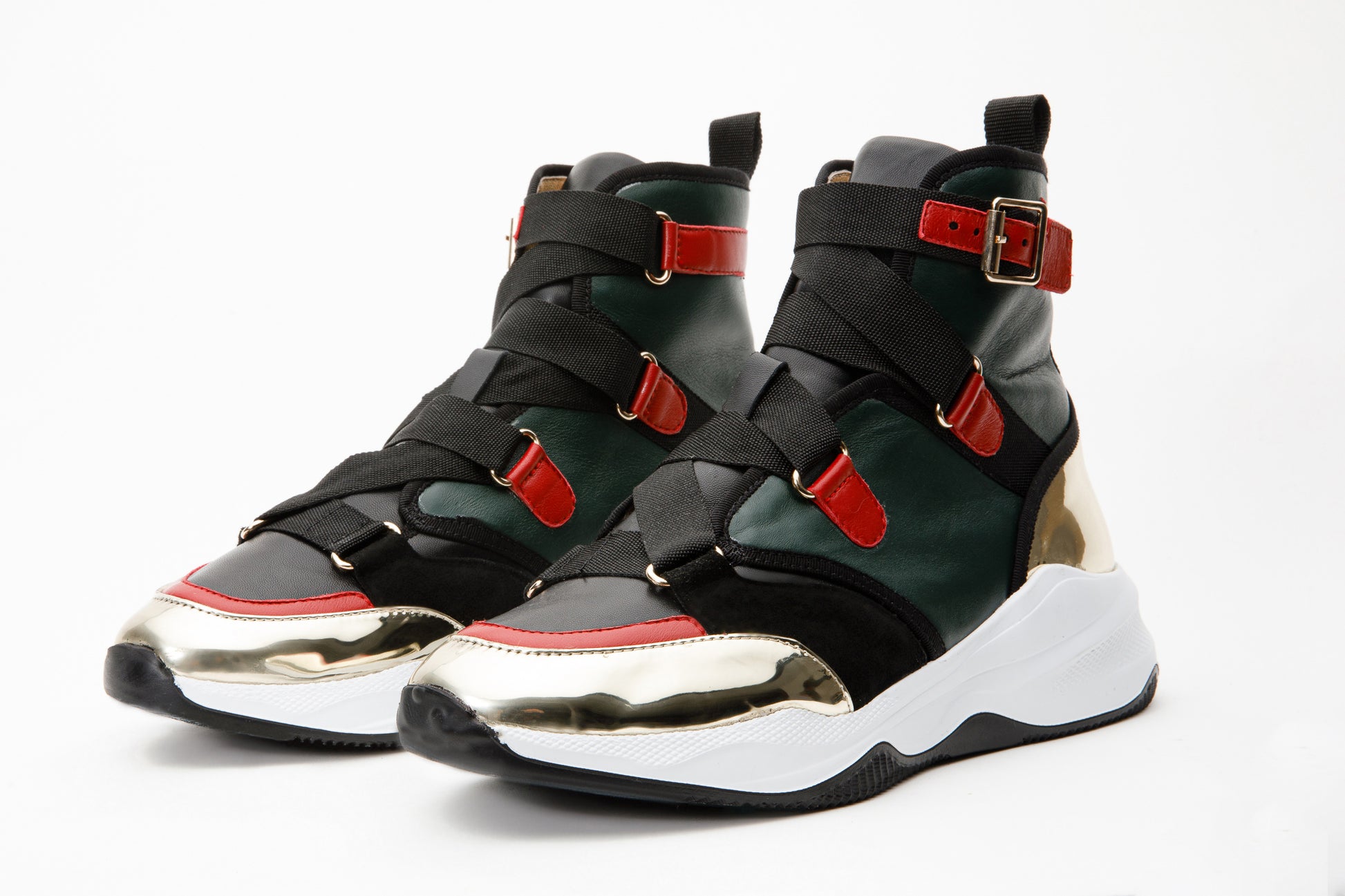جزمة نسائية بكاحل من الجلد باللونين الأخضر والذهبي من عثمان: مزيج من الأناقة والراحة