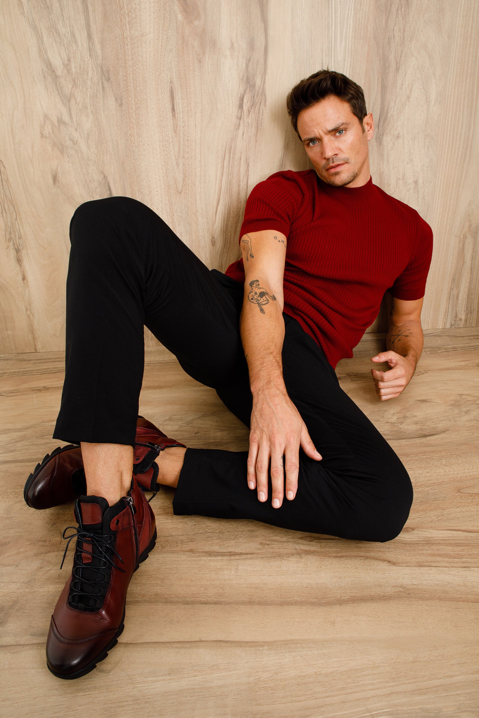 حذاء هيوستن الجلدي العنابي الرجالي الكاجوال برباط وسحاب: ارتقِ بأناقتك