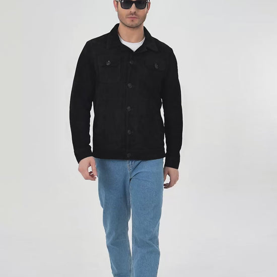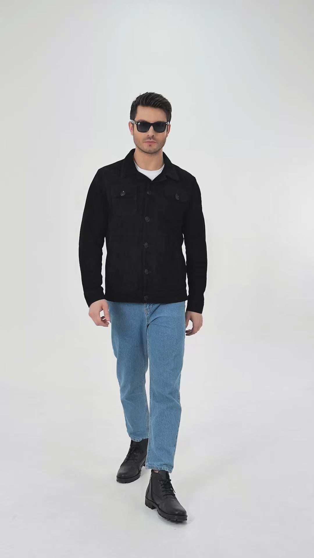 The Azzuro Suede Black Leather Jacket redefines casual sophistication with a luxurious soft-touch suede exterior and a refined modern cut.