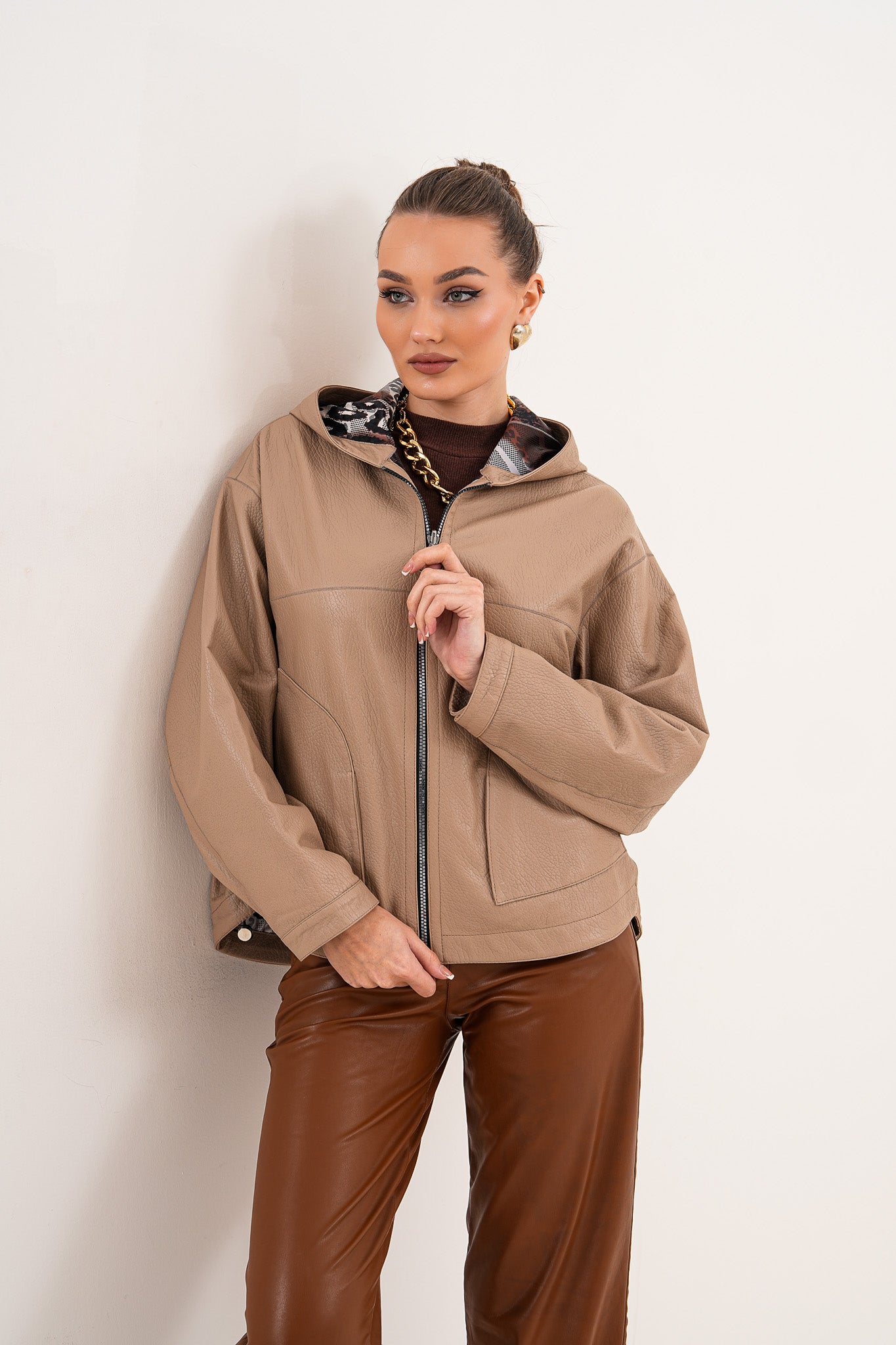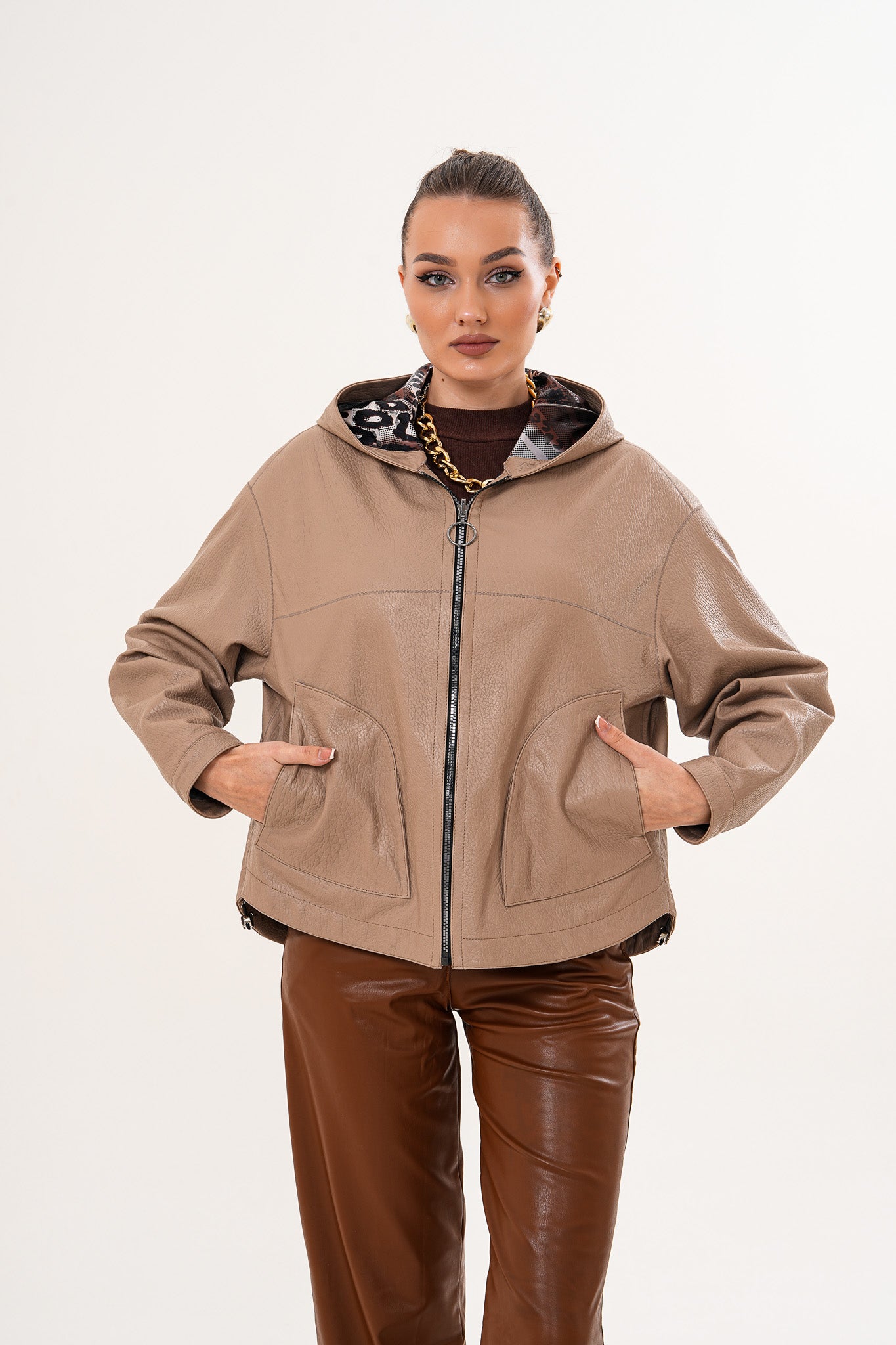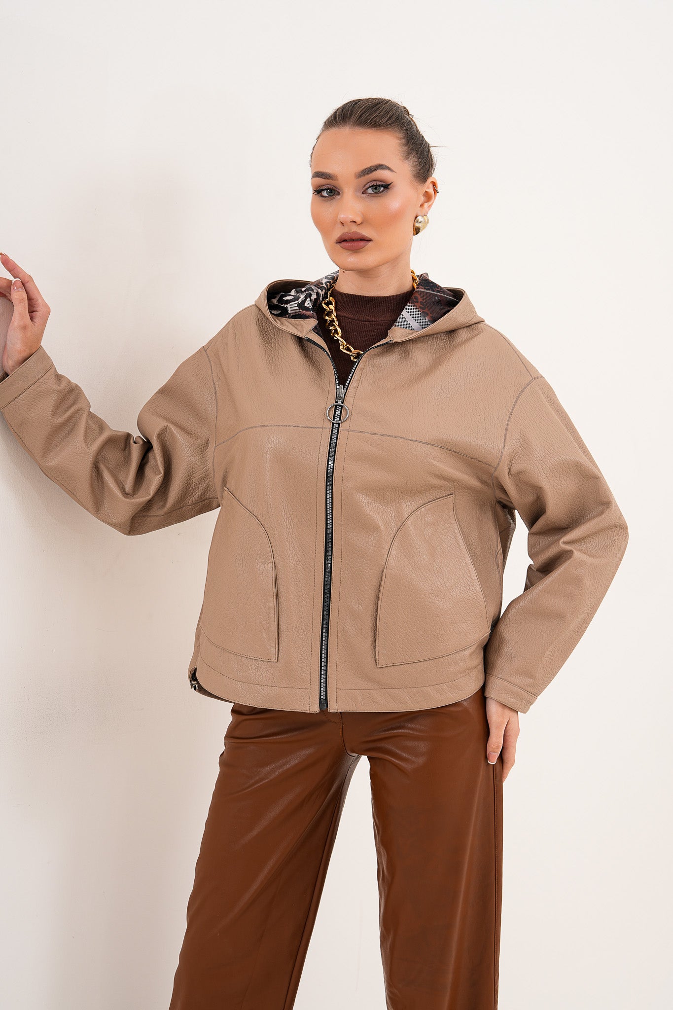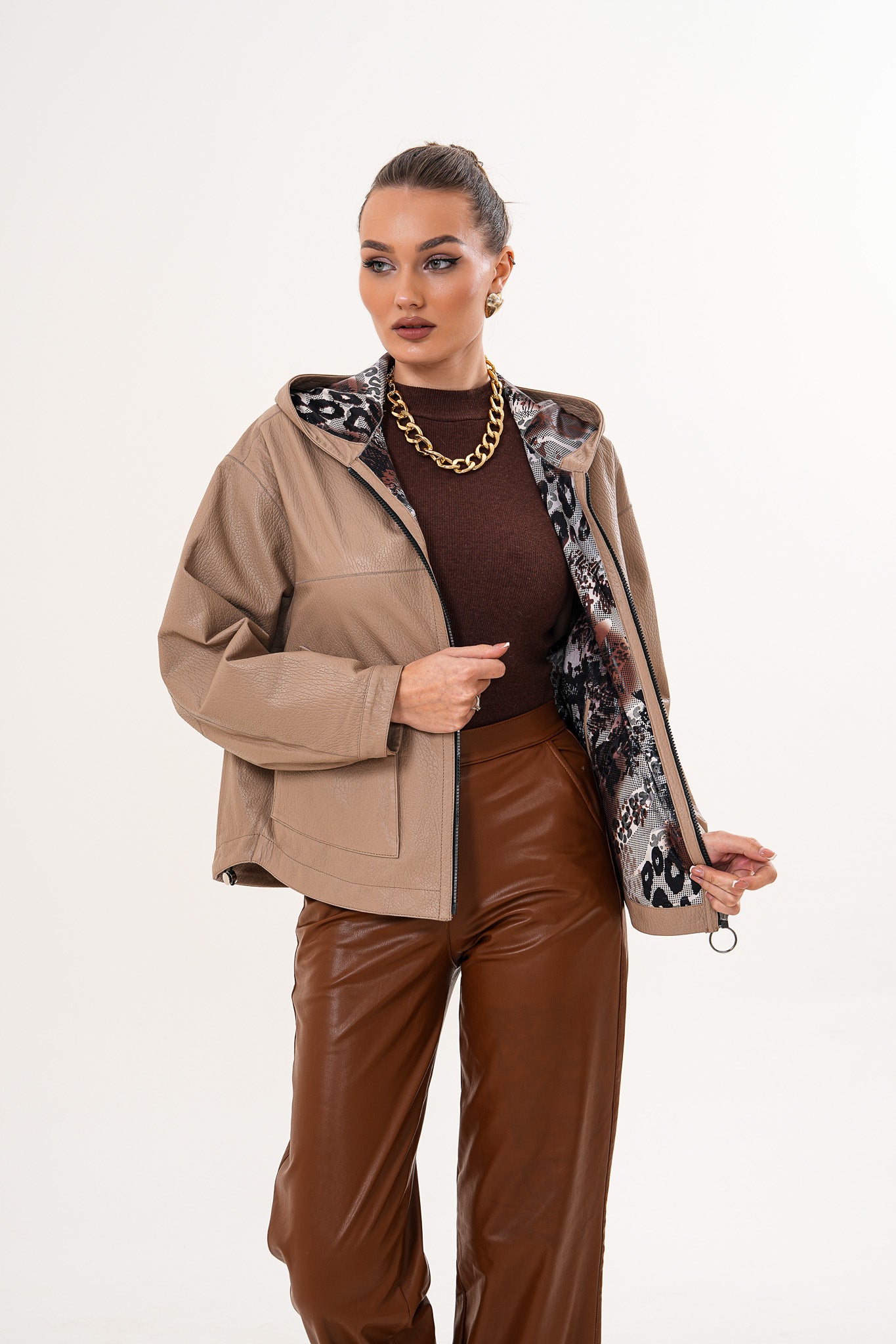 سترة نسائية من الجلد قابلة للعكس Calyra – لون طوبي