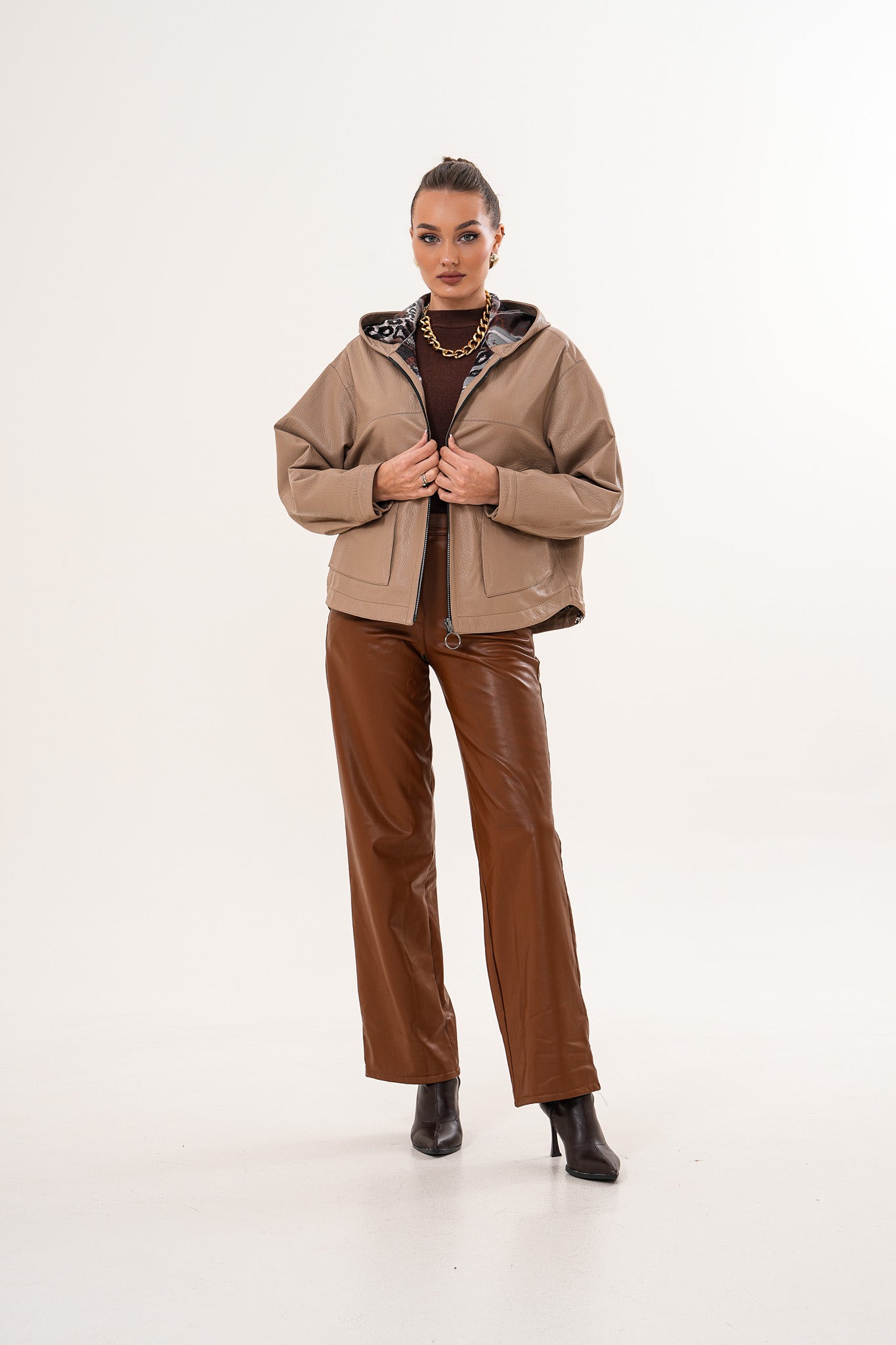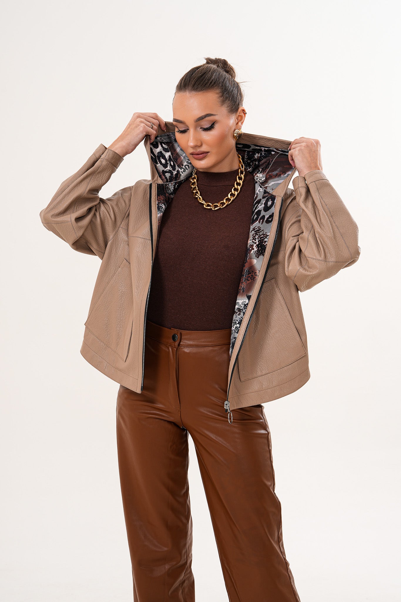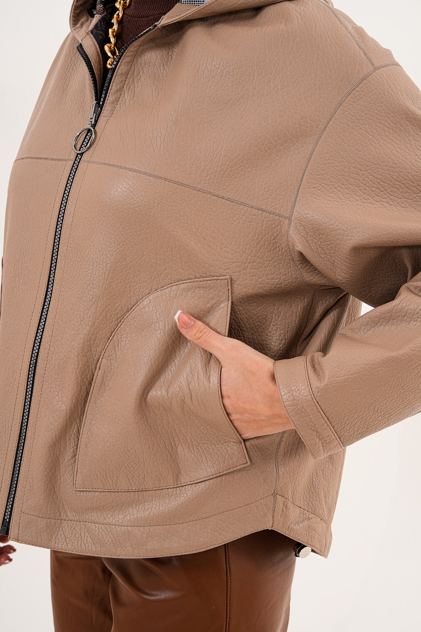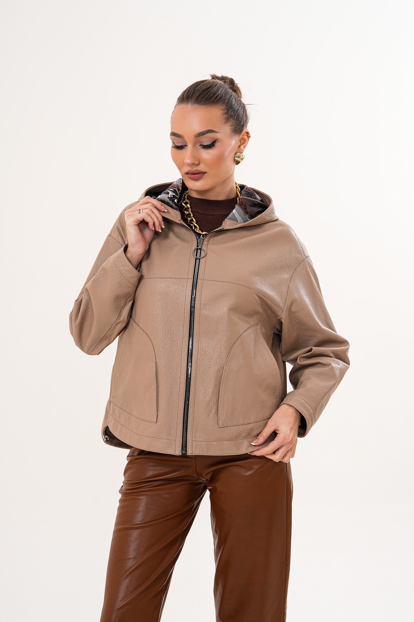 سترة نسائية من الجلد قابلة للعكس Calyra – لون طوبي