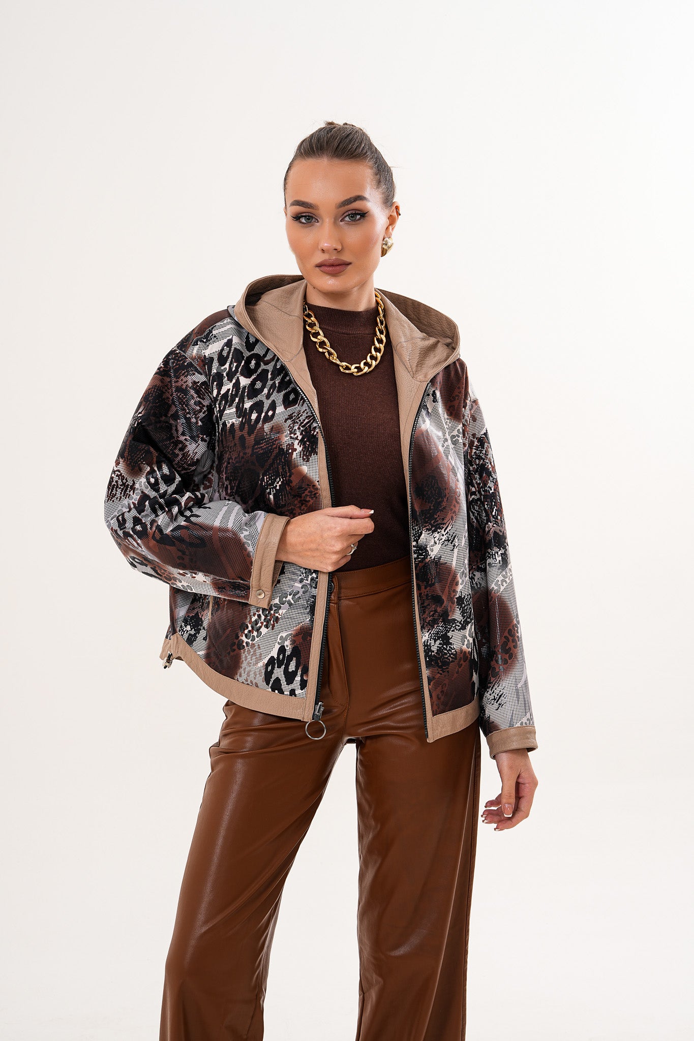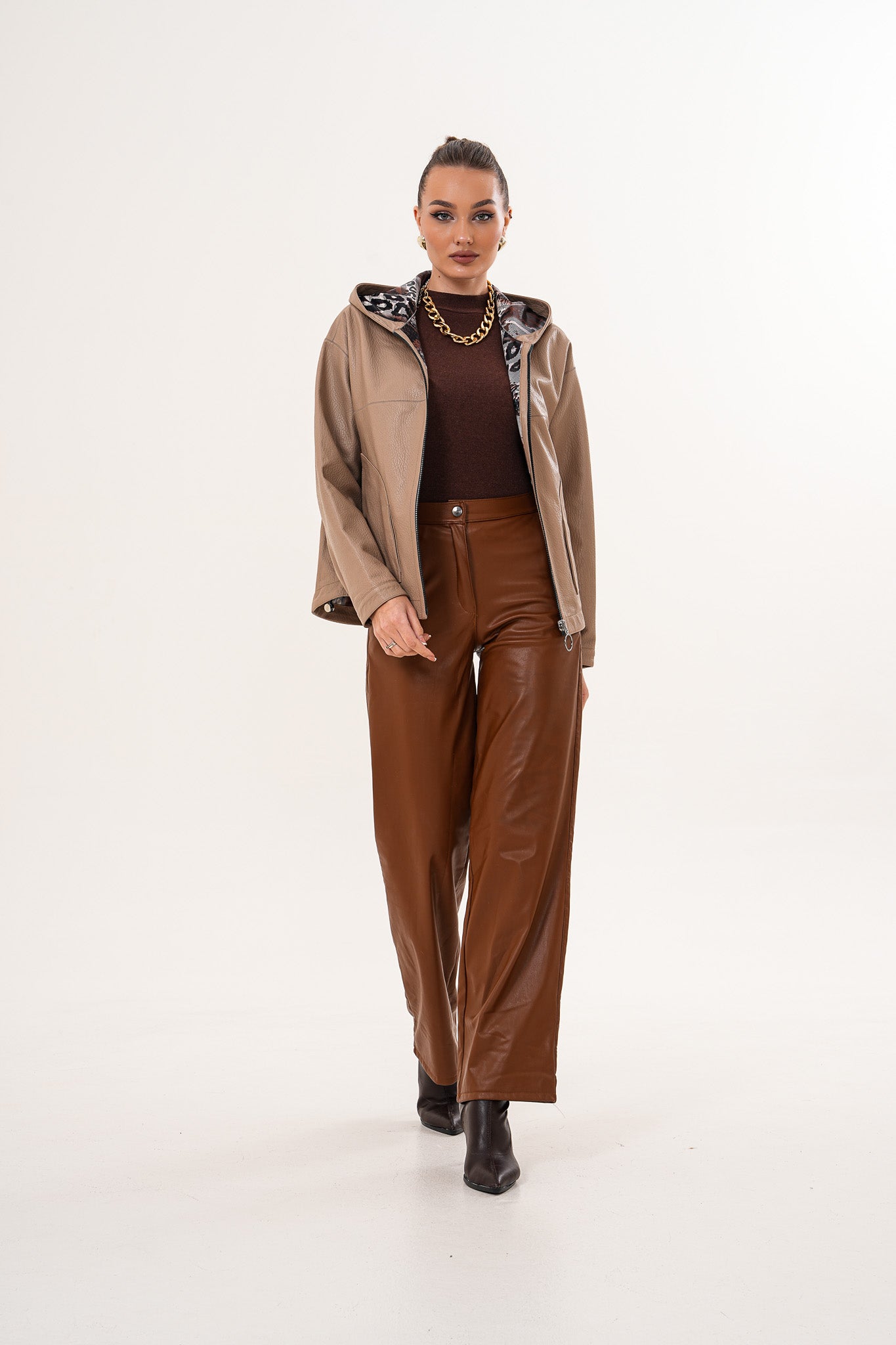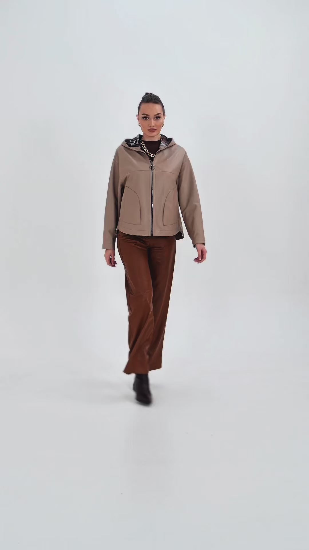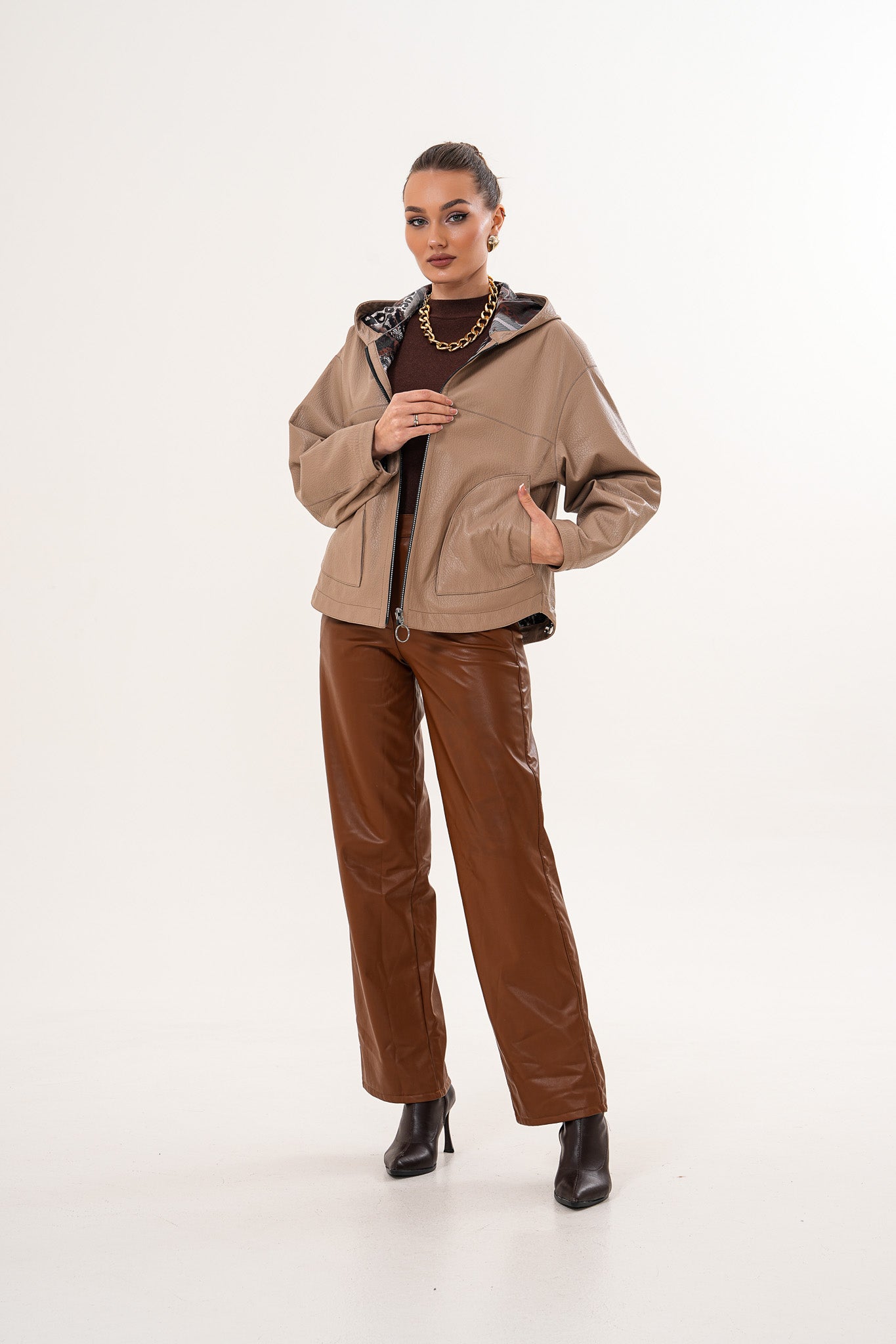 سترة نسائية من الجلد قابلة للعكس Calyra – لون طوبي