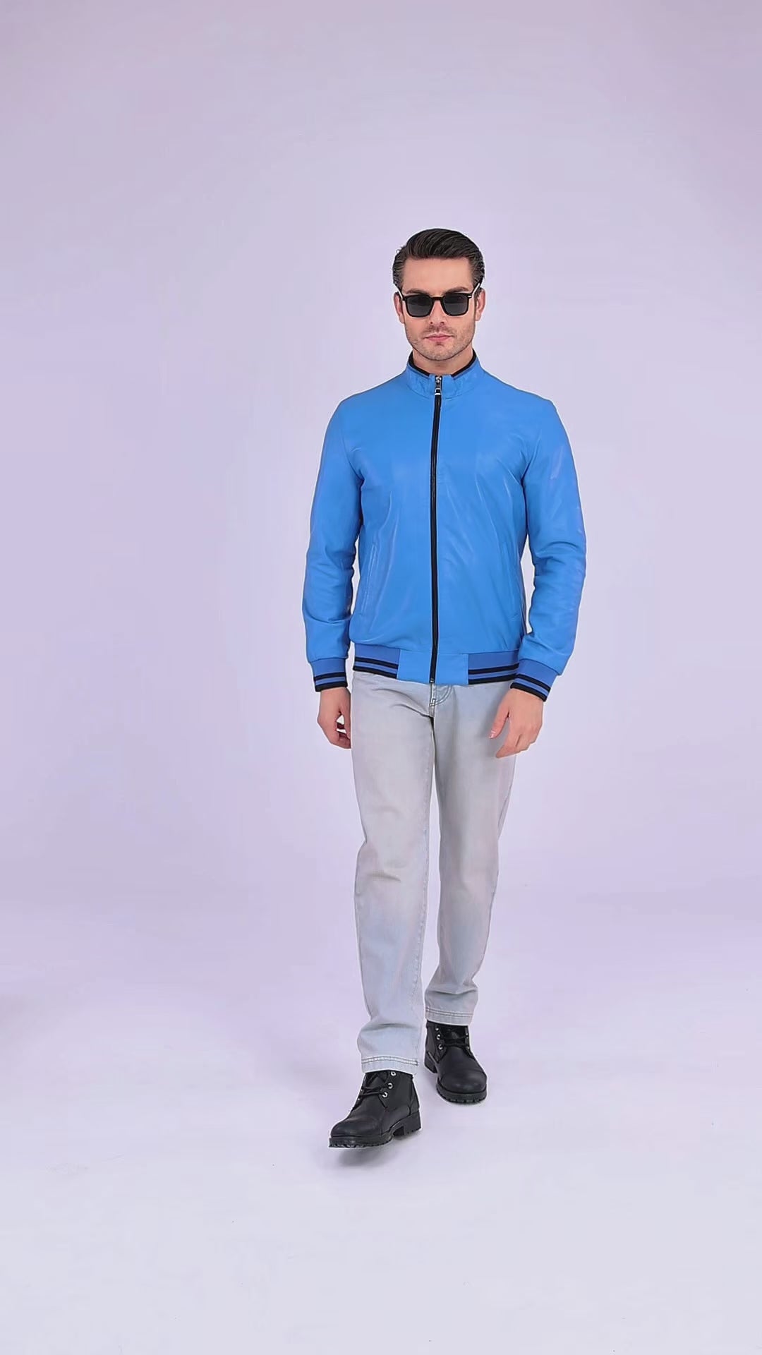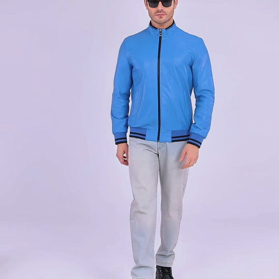 The Monza Sky Blue Leather Men Jacket captures the perfect balance between sporty energy and refined Italian craftsmanship.