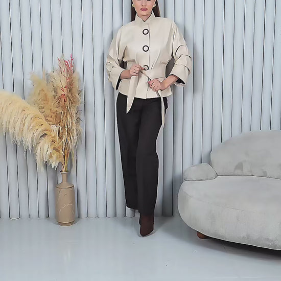 Belt: Matching self-tie leather belt for a tailored silhouette