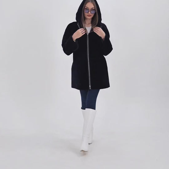 The Portofino Black Reversible Shearling Women Jacket embodies timeless elegance and everyday comfort.