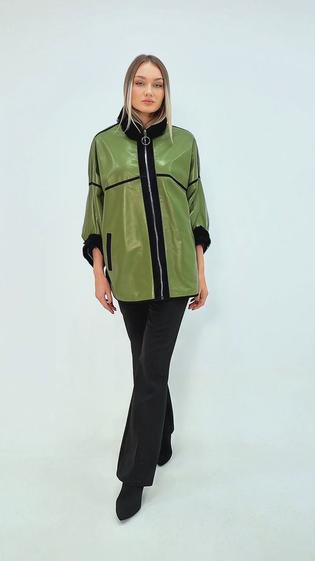 The Rebel Reversible Shearling Olive Green Leather Women Jacket