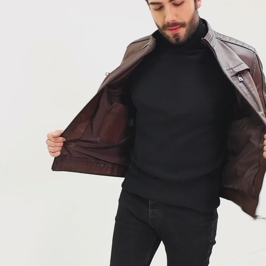 The Rossi Dark Chocolate Leather Men Jacket is a refined expression of masculine elegance and artisanal craftsmanship.