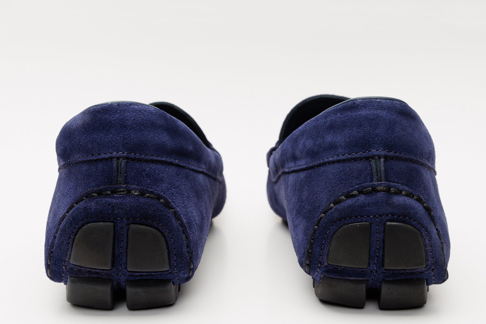 Mocasín Bit Drive de piel de ante azul marino de Bari: sofisticación informal