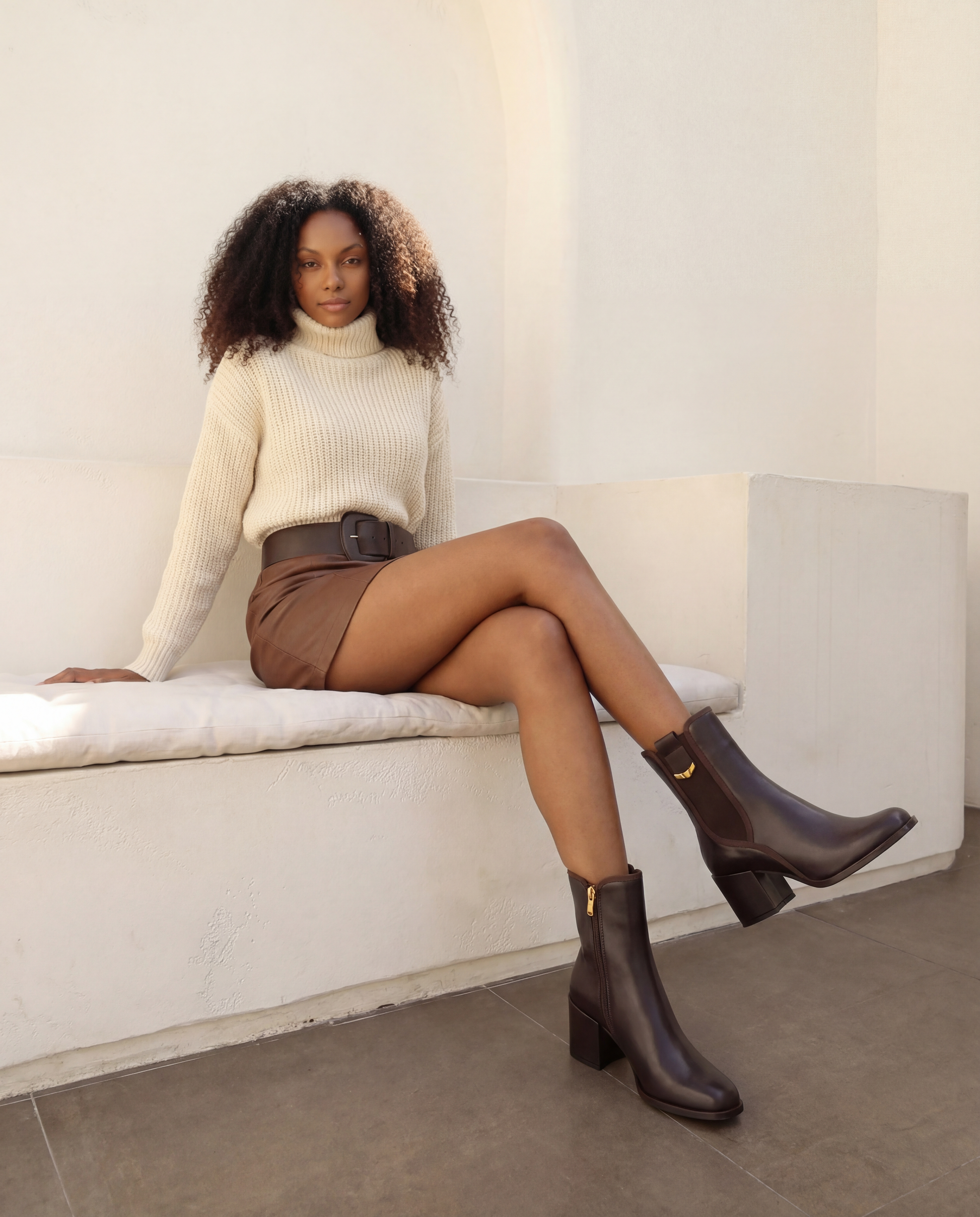 Botas de mujer Kensington en cuero marrón con tacón de bloque y caña media