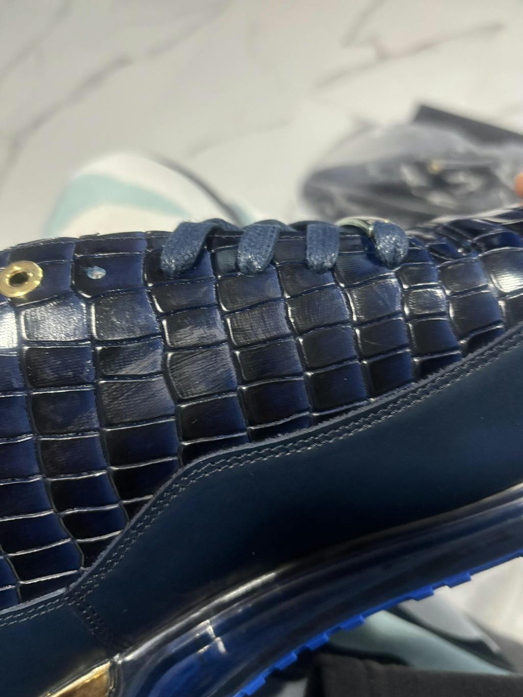 Eleva tu estilo con 'The Marseille' – La zapatilla de cuero azul marino definitiva