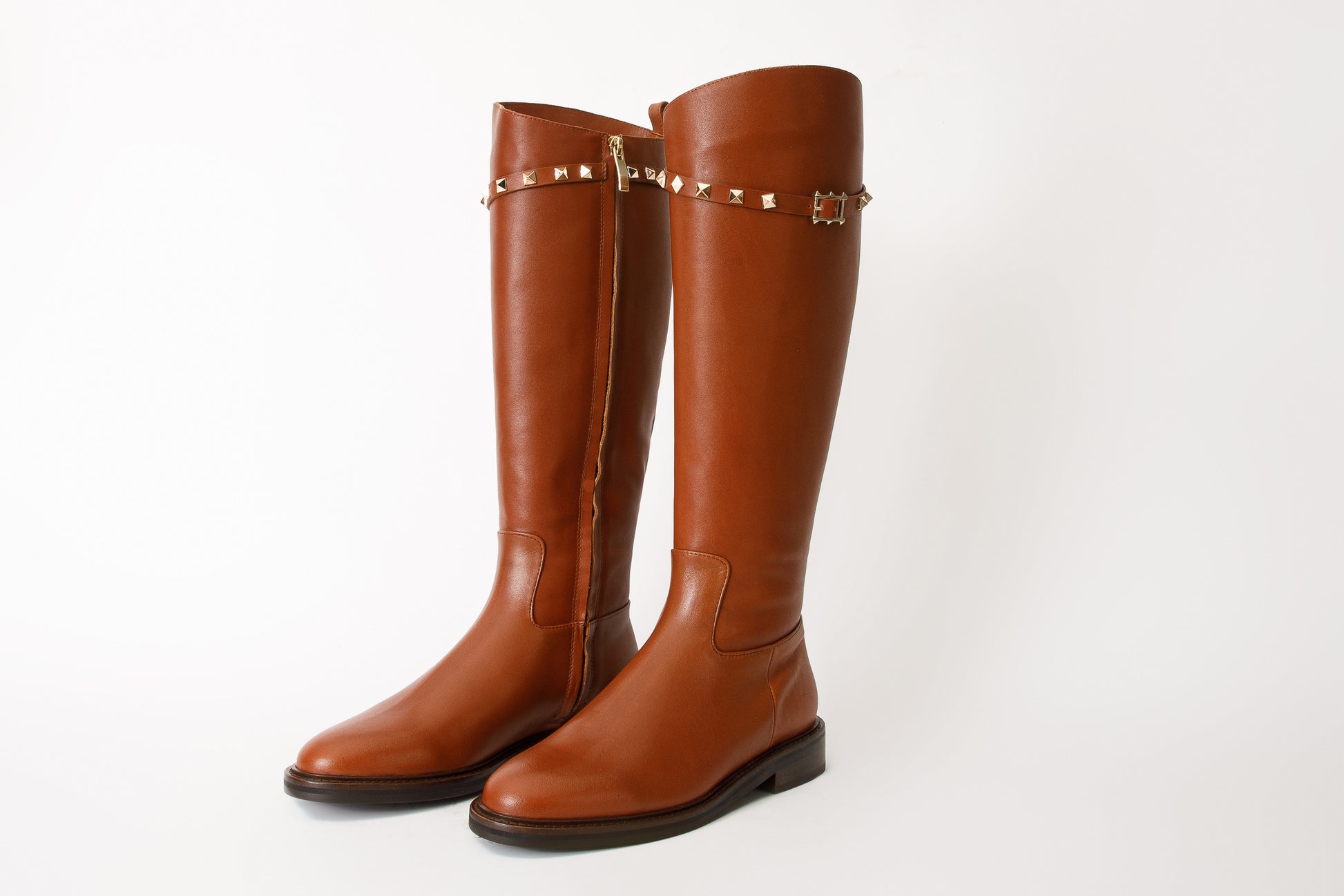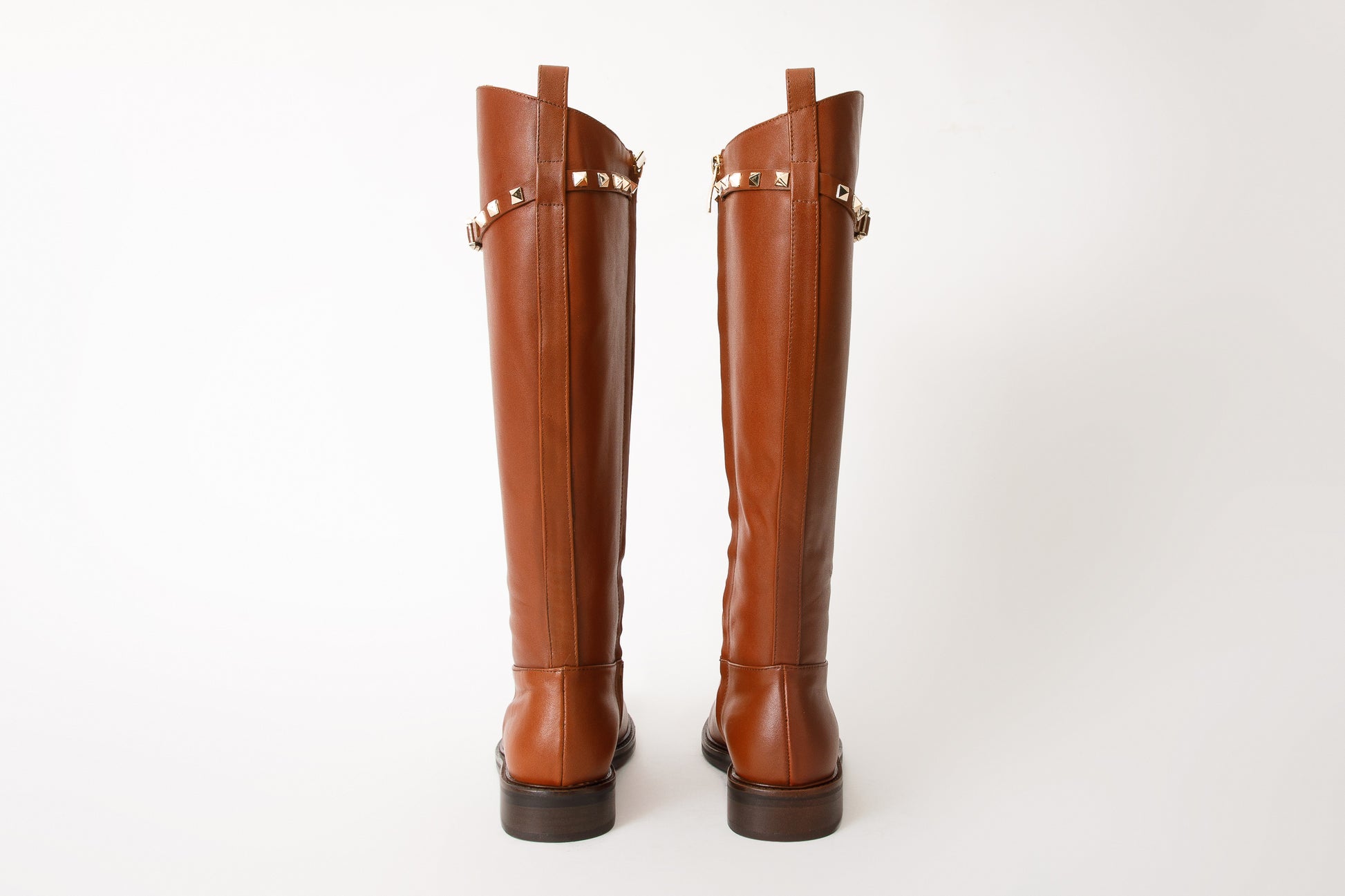 Botas altas hasta la rodilla de cuero color canela Rica para mujer