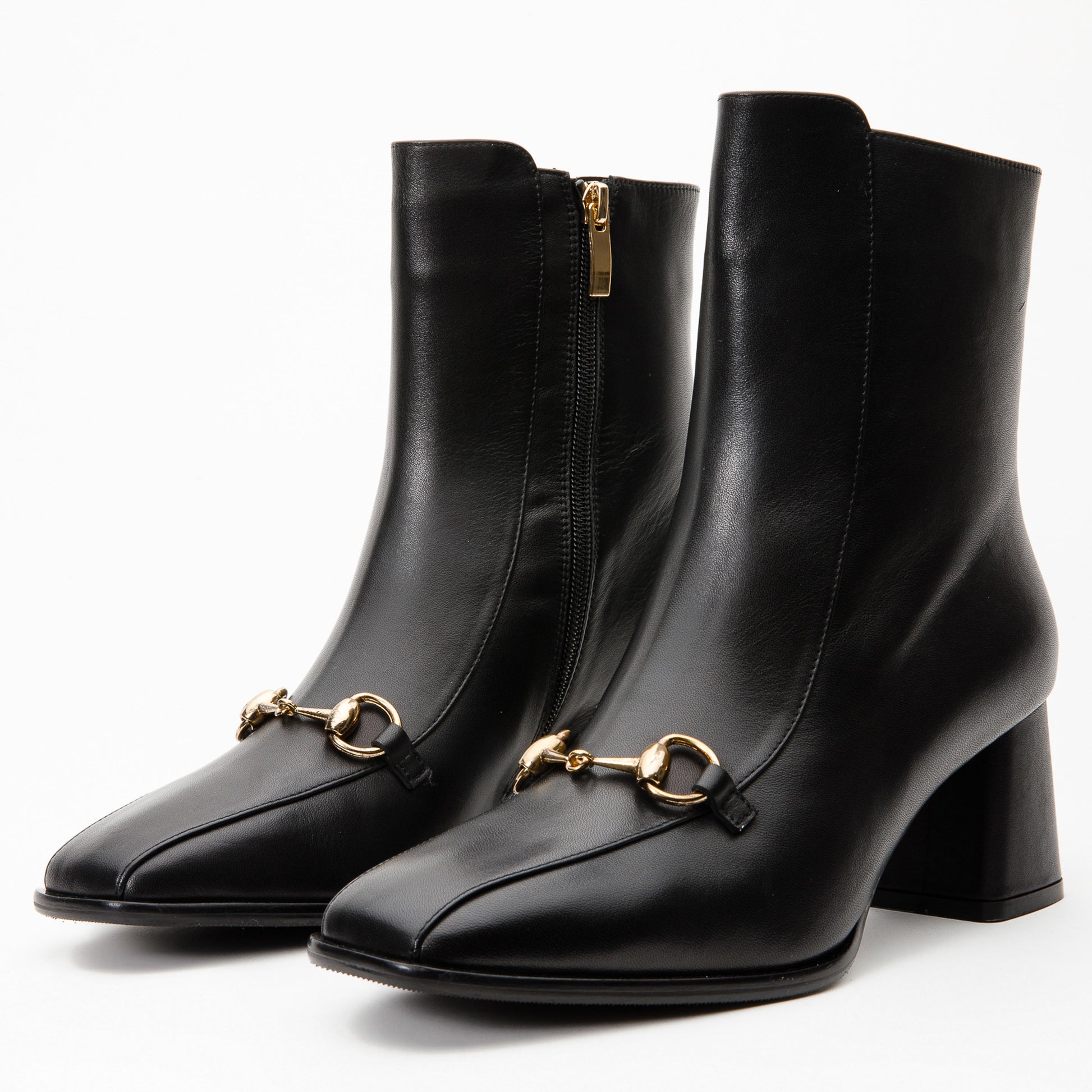 Bukres Botín de Mujer con Tacón Cuadrado de Cuero Negro más que calzado; es una encarnación de estilo refinado y comodidad inigualable, asegurando que salgas con confianza y elegancia.