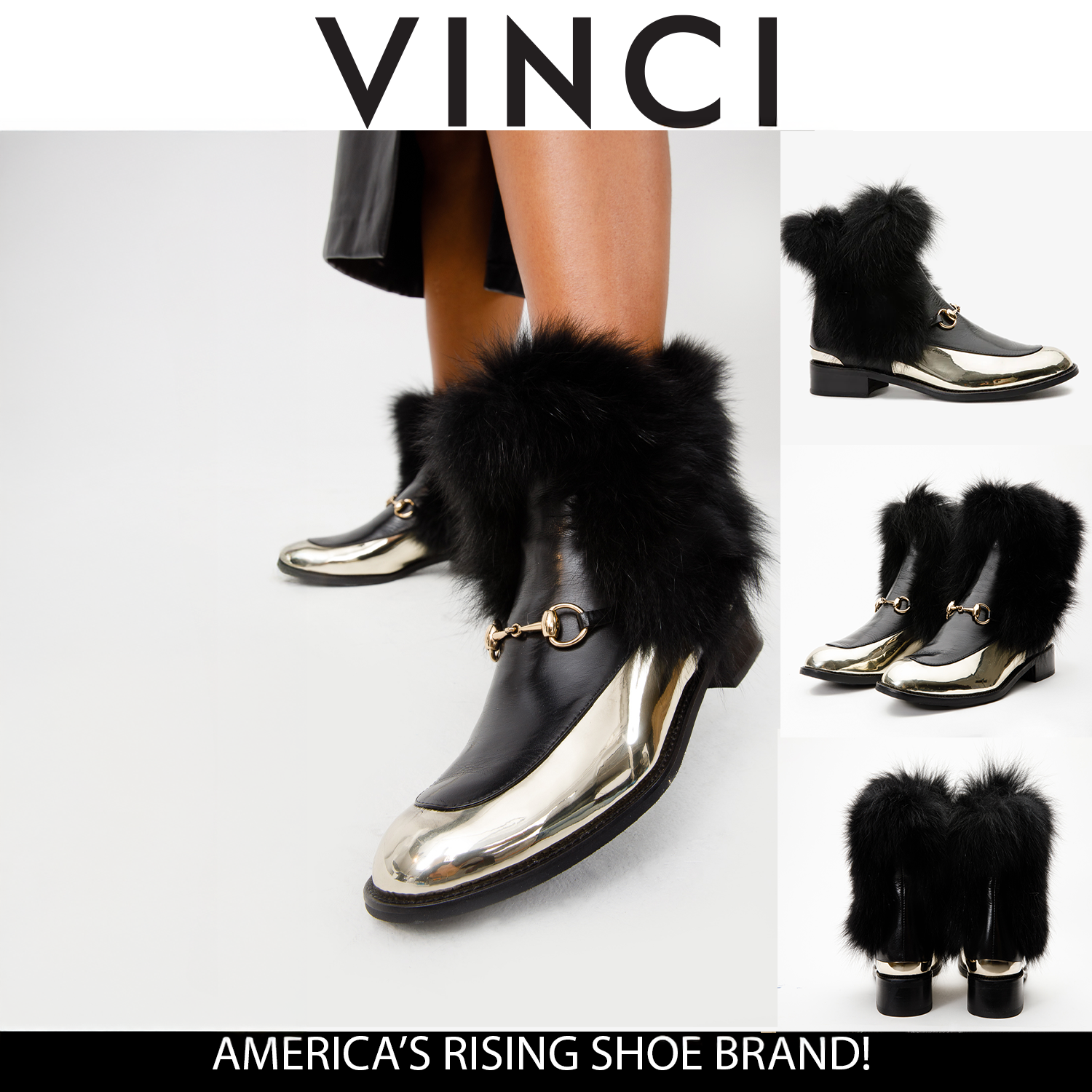 Bota de media pantorrilla para mujer de piel de zorro natural en color negro y dorado Izmir