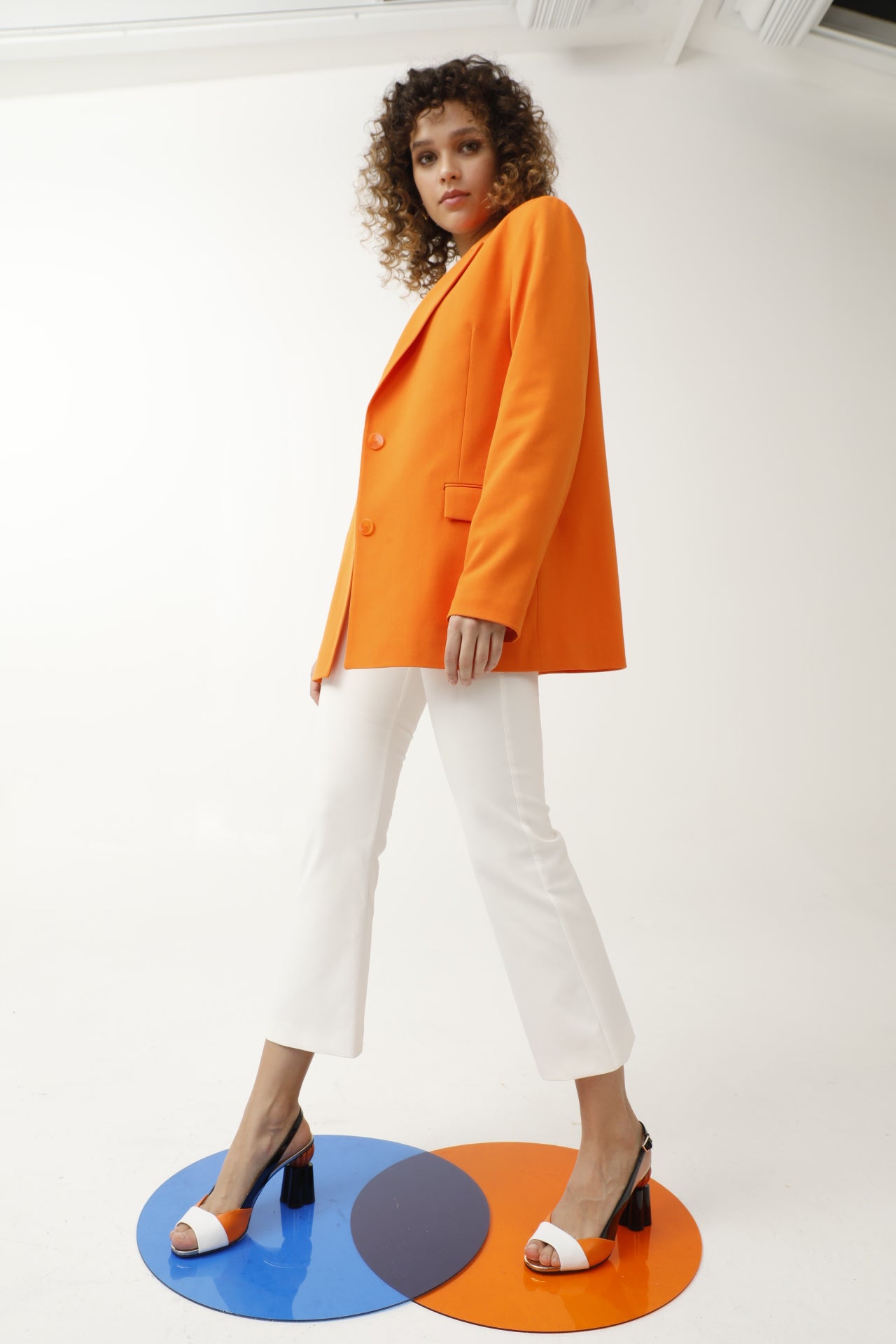 Armonía de negro y naranja: La sandalia para mujer Rize Multicolor con tacón de cuero en forma de calabaza combina hermosamente el atractivo clásico del negro con la energía vibrante del naranja, creando un diseño armonioso y llamativo.