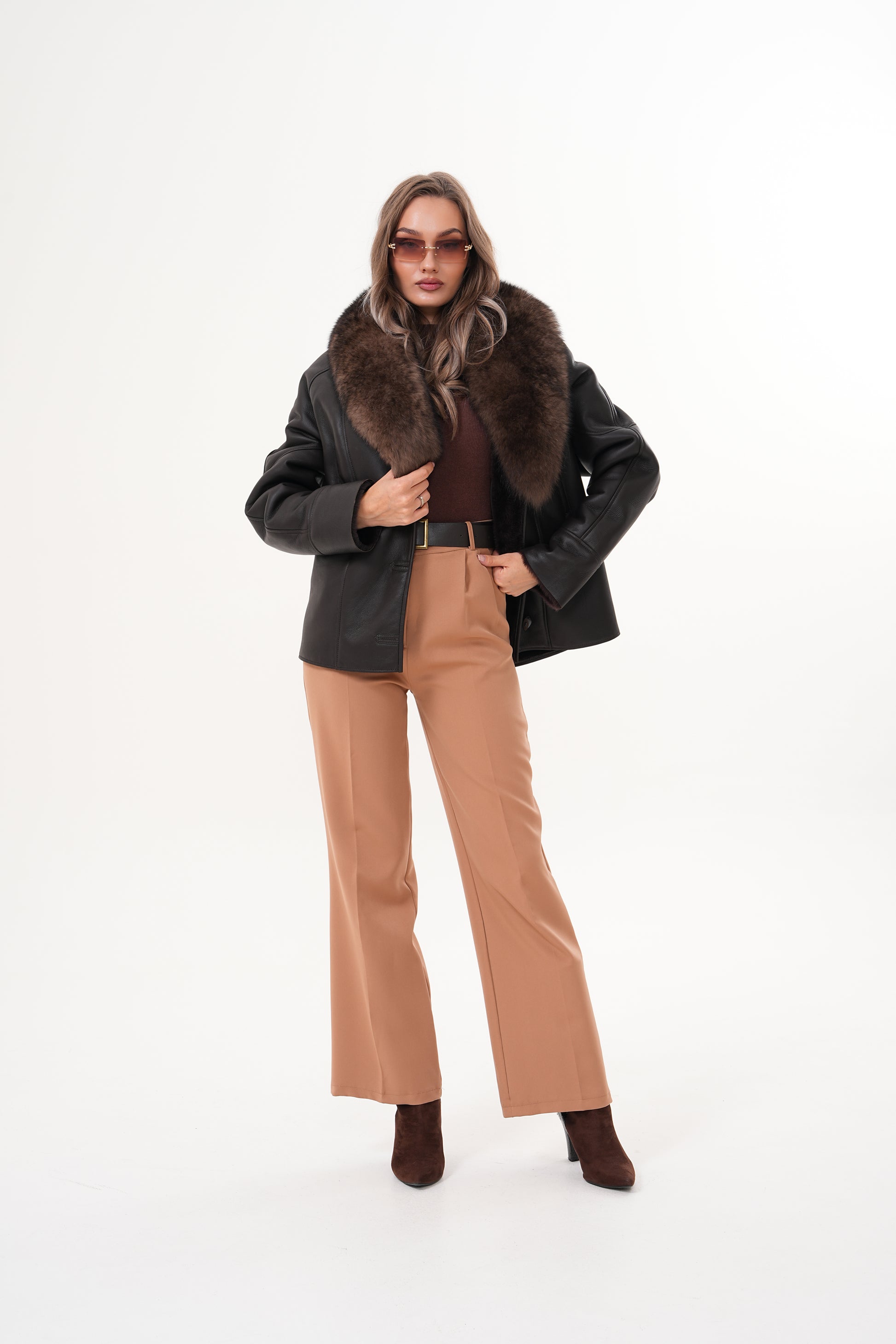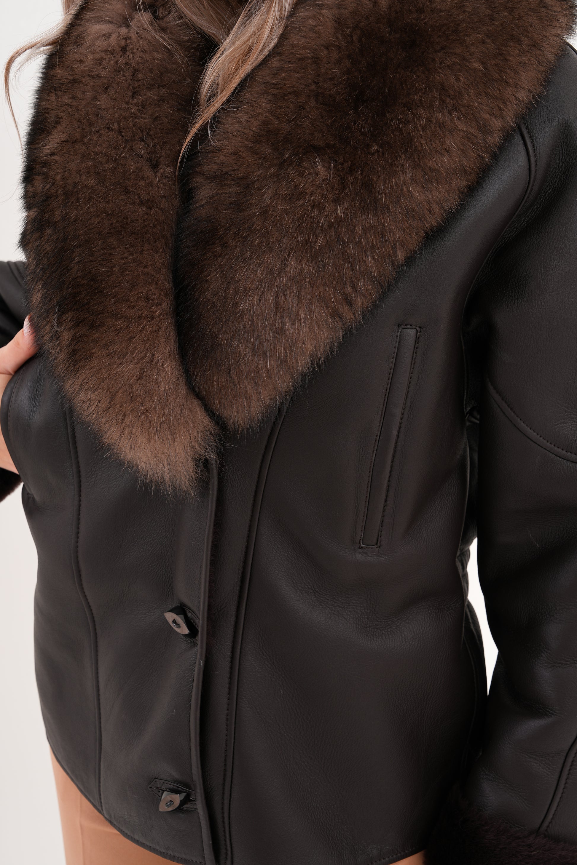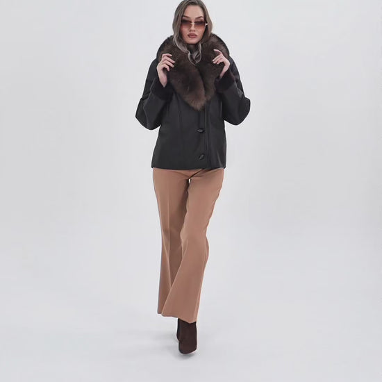 The Estelle Black & Brown Shearling Leather Women Jacket