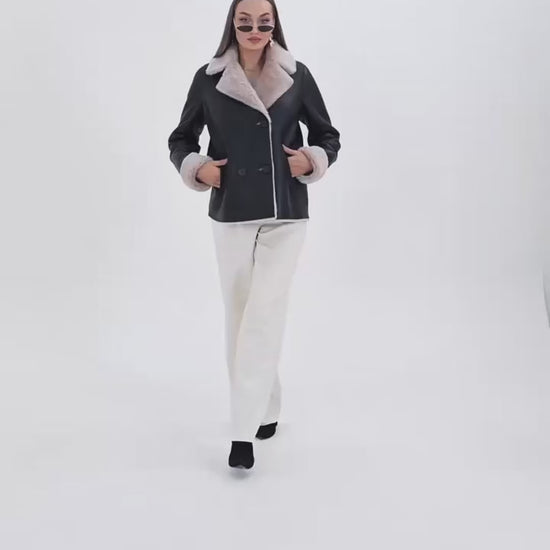 The Zurich Double-Breasted Cream Shearling Collar Leather Women Jacket