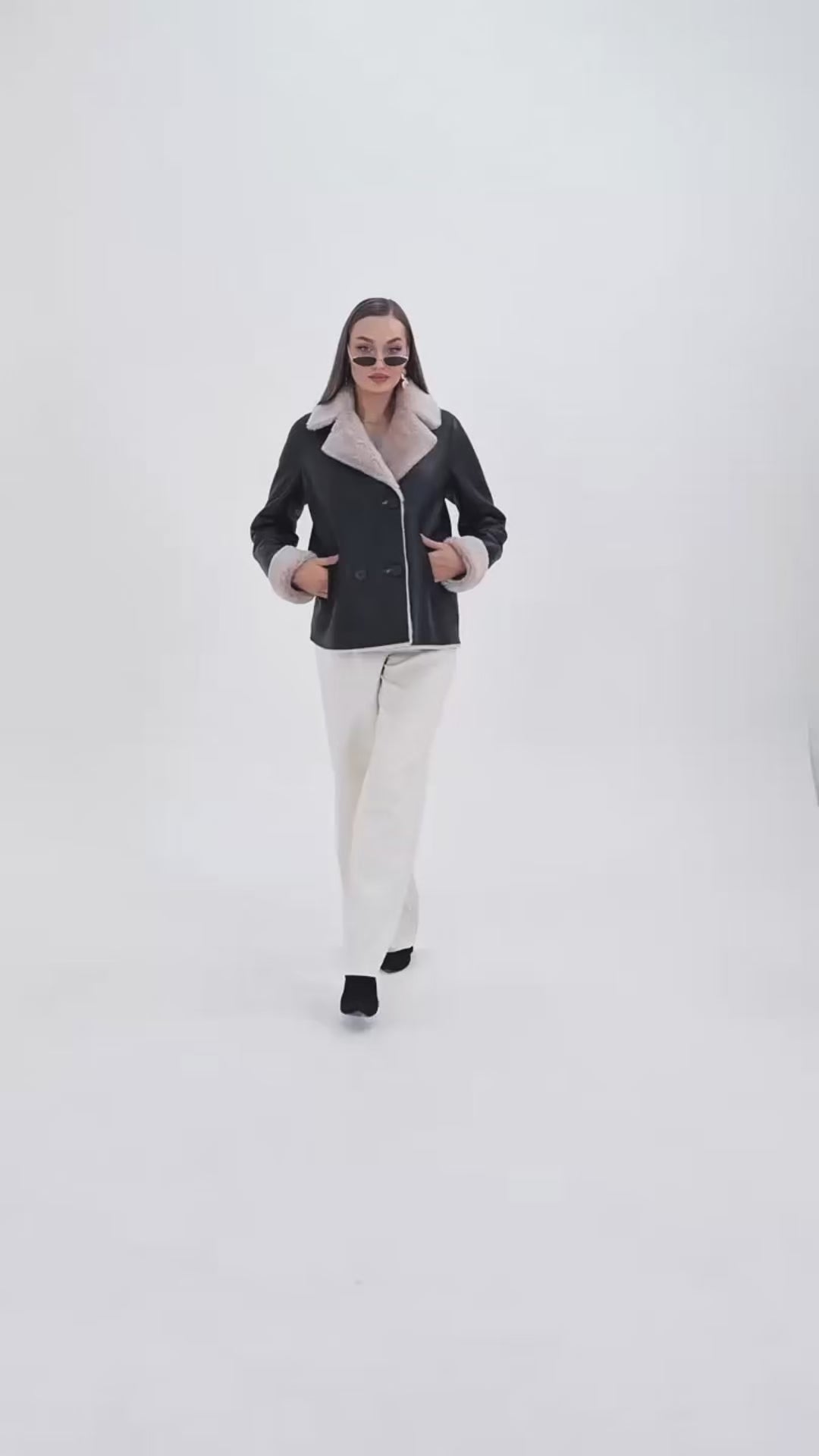 Color: Black with Brown Shearling Collar and Trim