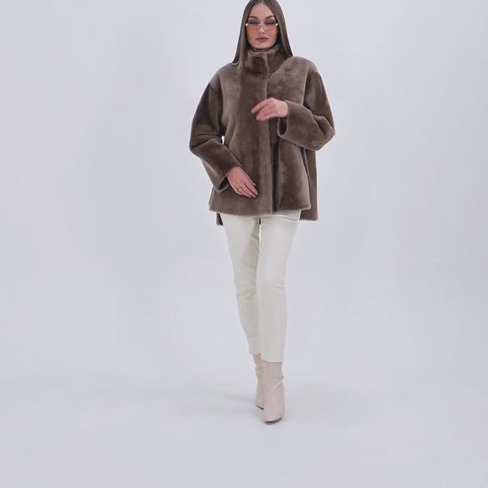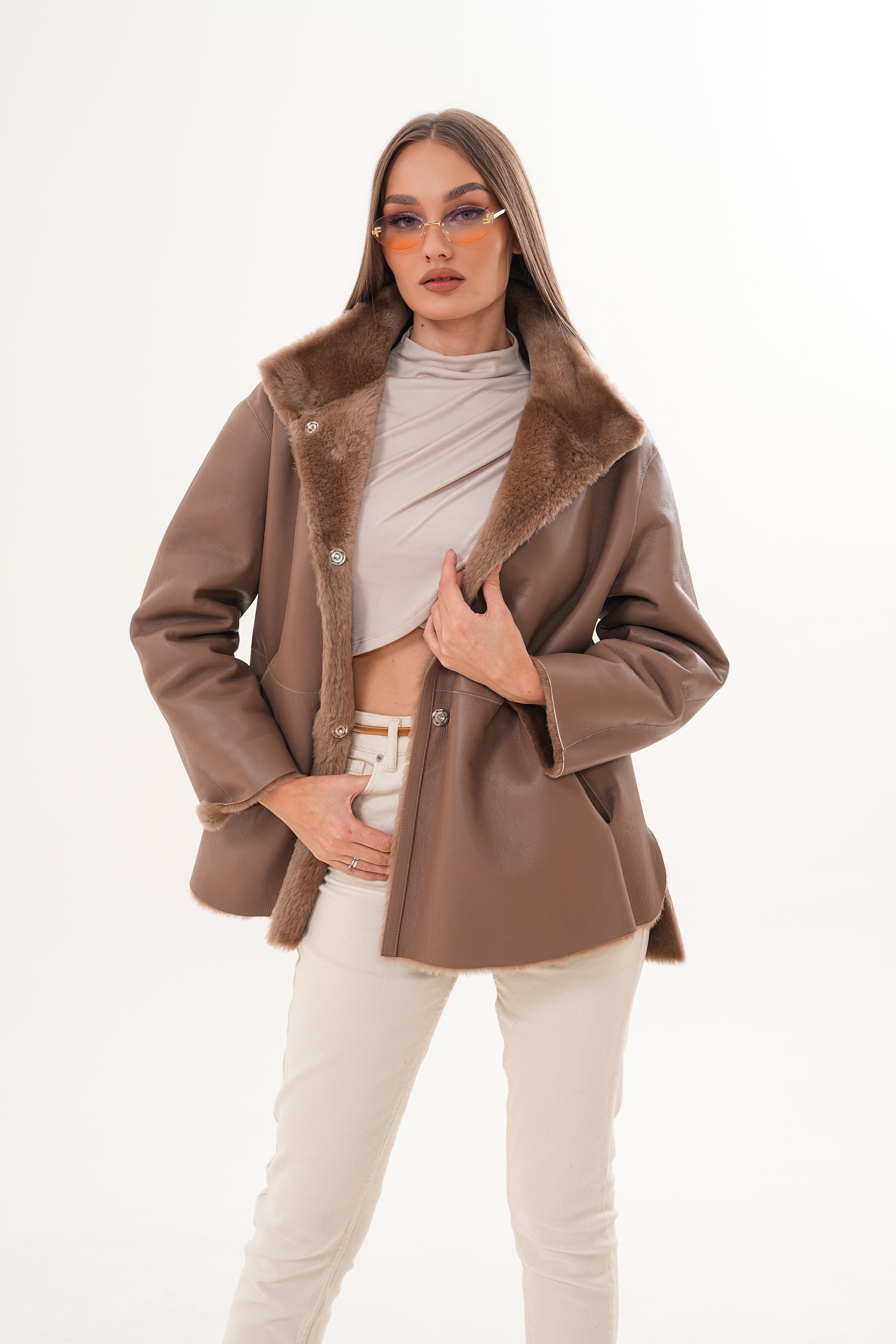 The Belluna Camel Reversible Shearling Women Jacket combines effortless elegance with everyday versatility.