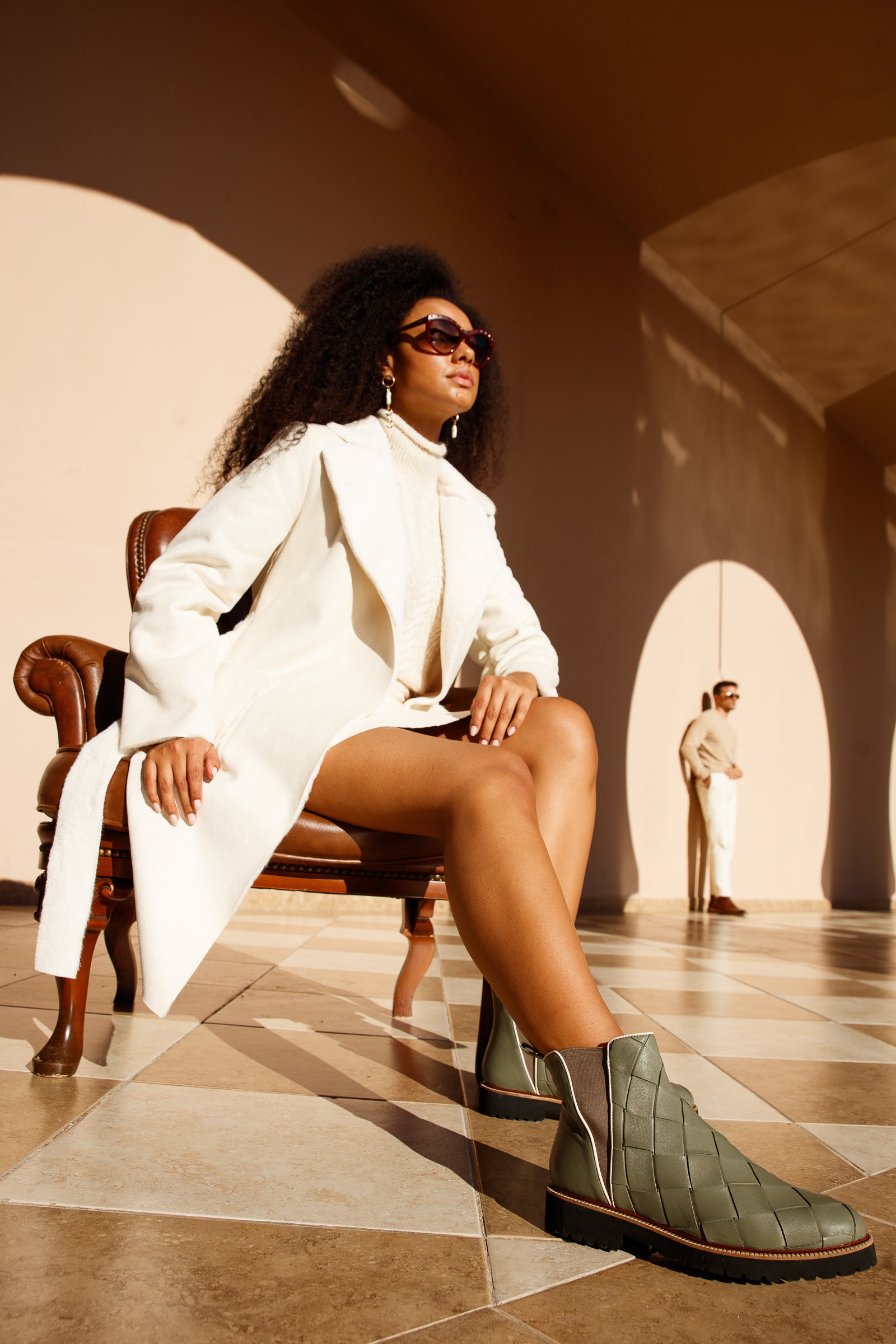 The Luisina Green Handwoven Leather Ankle Boot Final Sale!