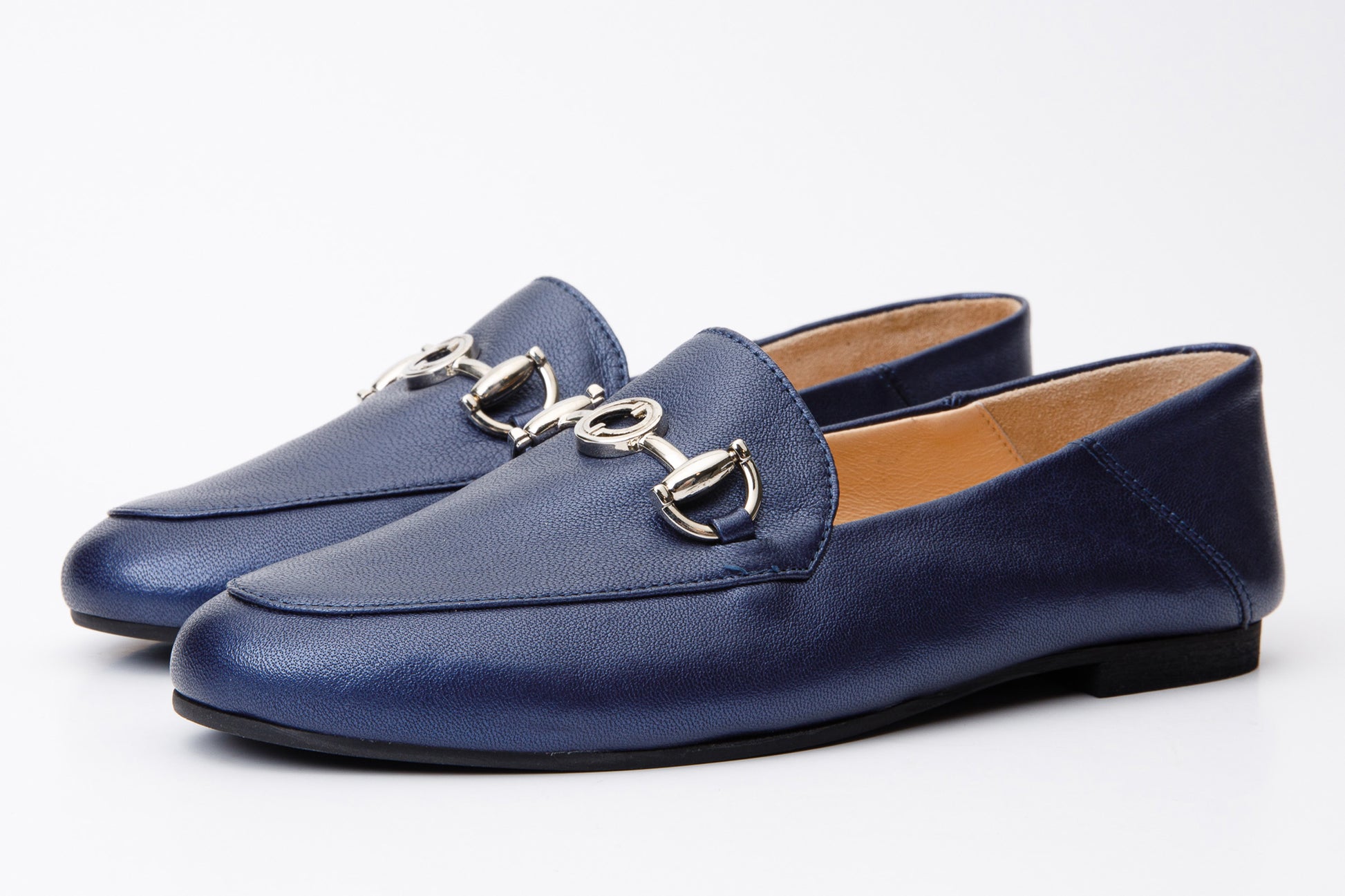 Experience unparalleled comfort and timeless elegance with the Luanda Navy Blue Leather Women Flat Shoe, crafted from ultra-soft leather for a luxurious and effortless fit.