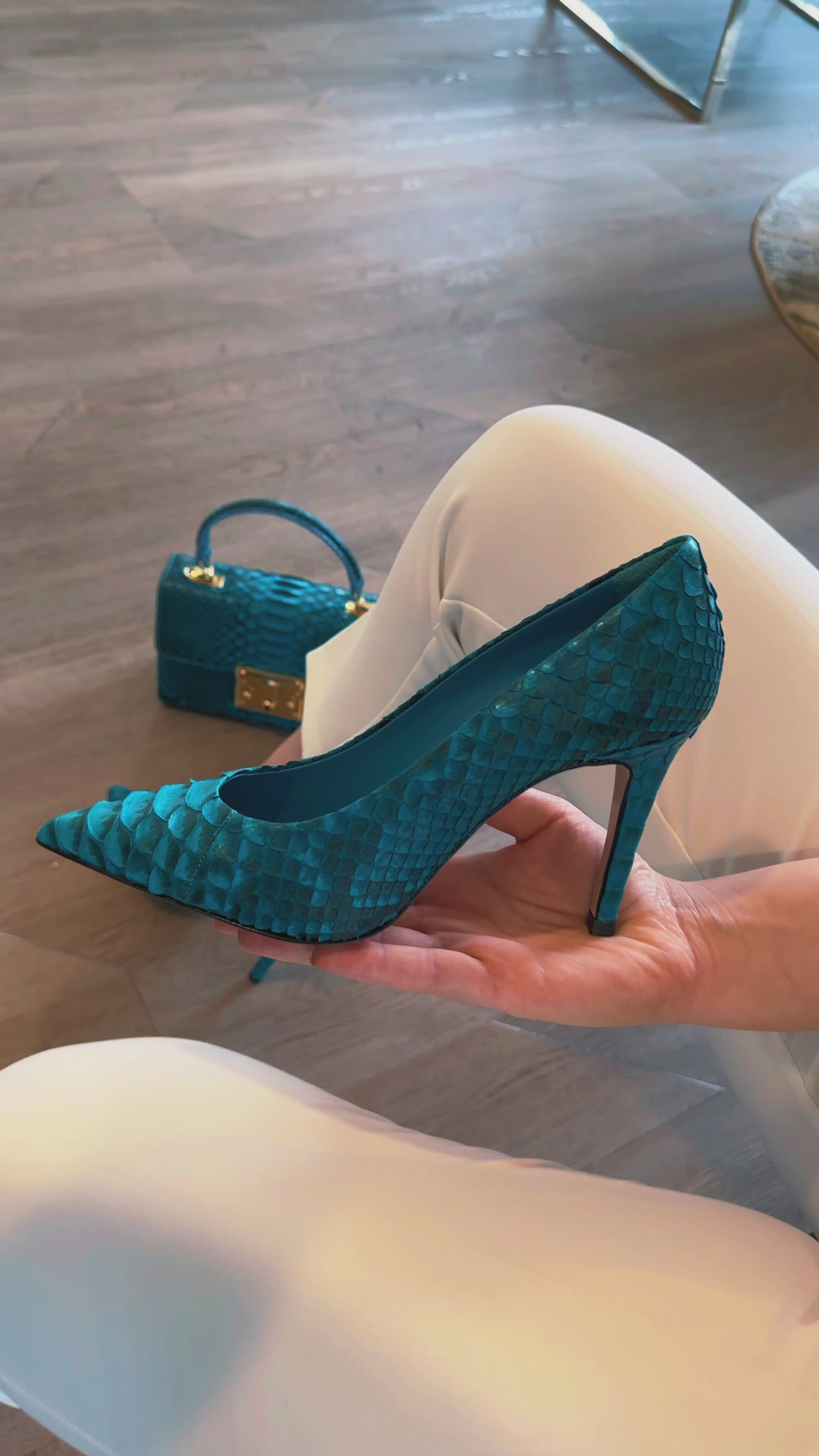 - Complete the Look: Effortlessly complement your style by pairing the Queen Turquoise Python Leather Pump with the matching handbag, available separately.