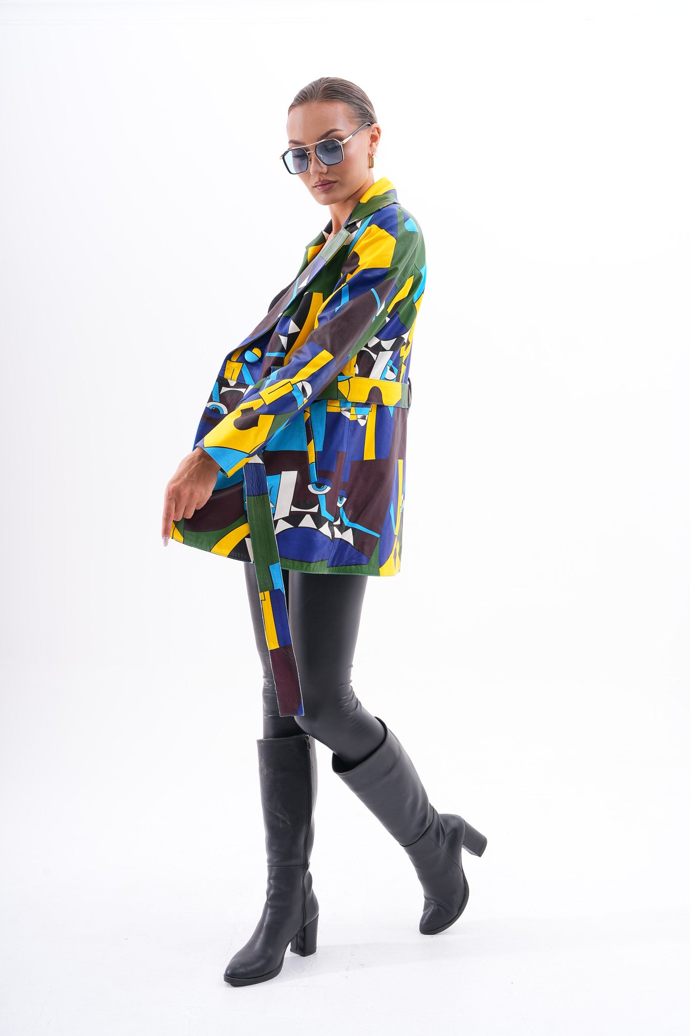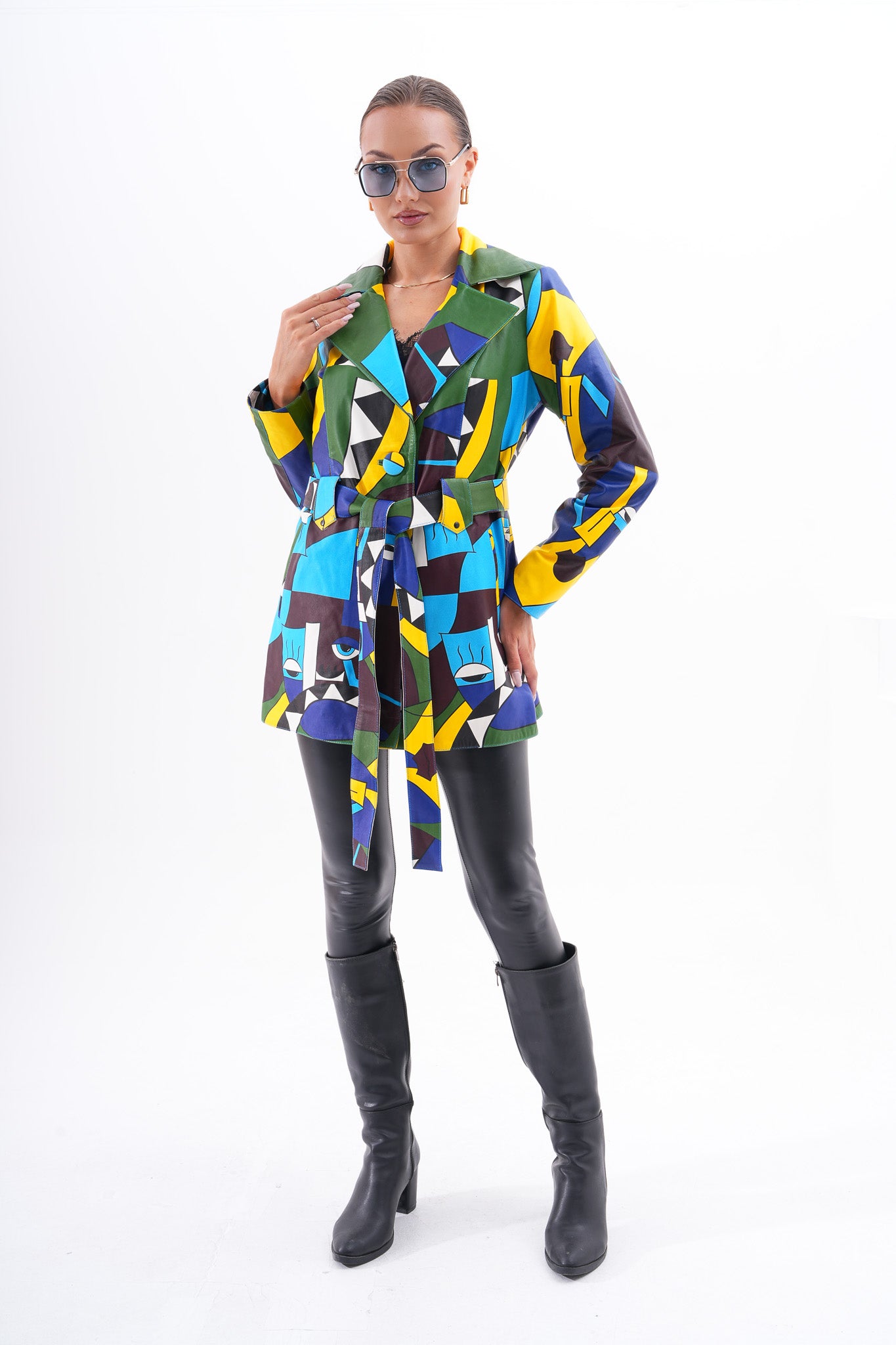 Sienna Abstract Art Leather Women Jacket – Blue Green Edition