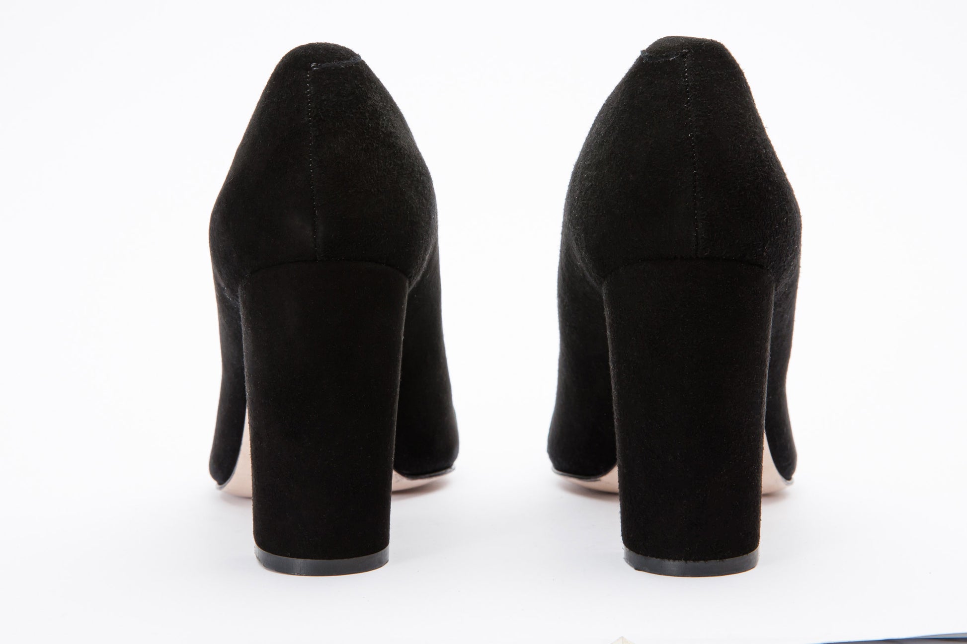 The Afega Black Suede Leather Block Heel Pump Women Shoe