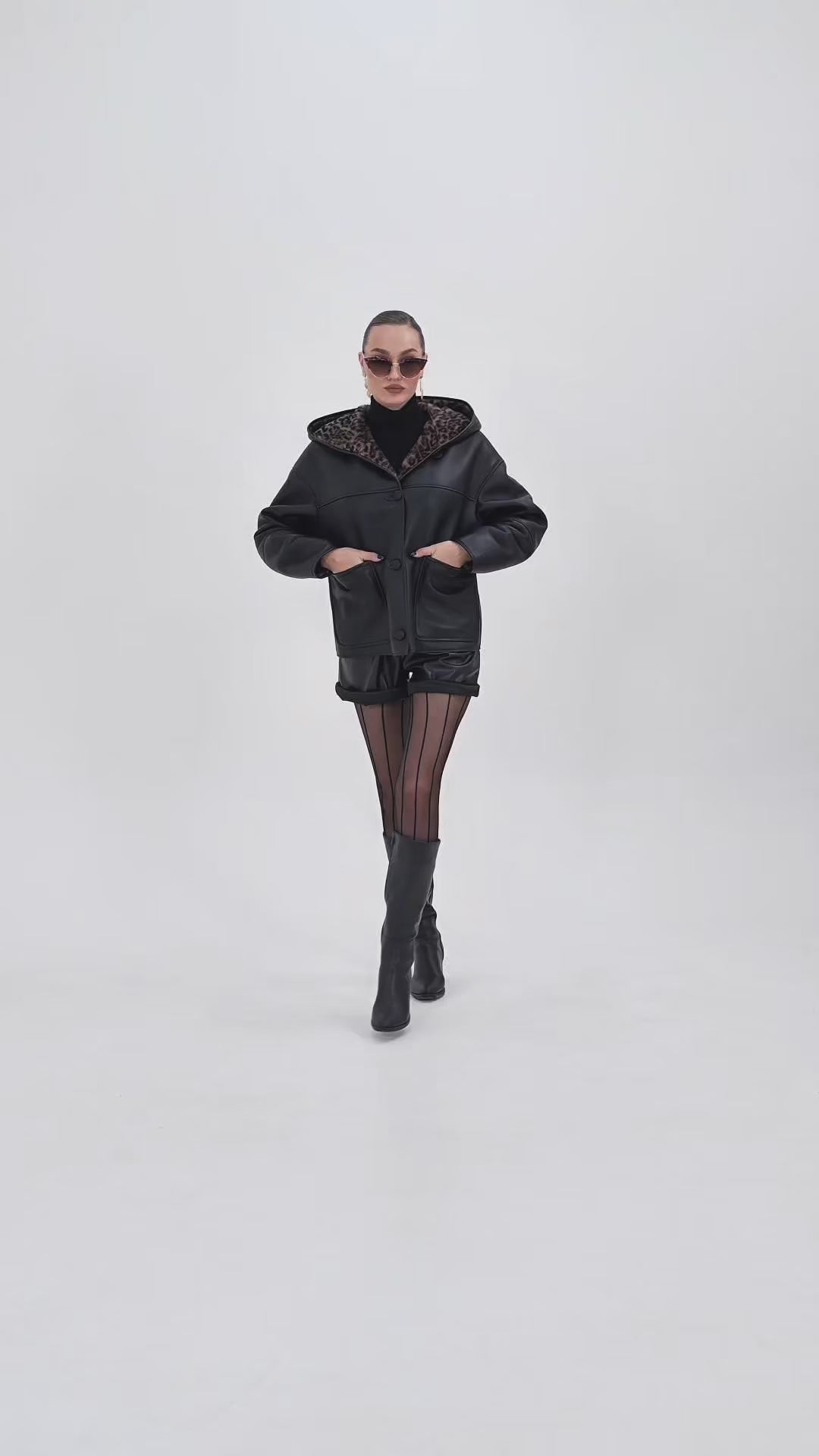 Oversized hood with visible leopard Toscana shearling trim for an eye-catching touch