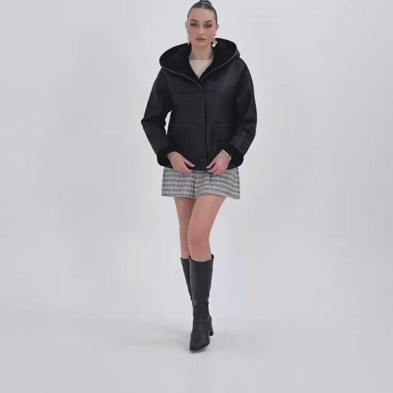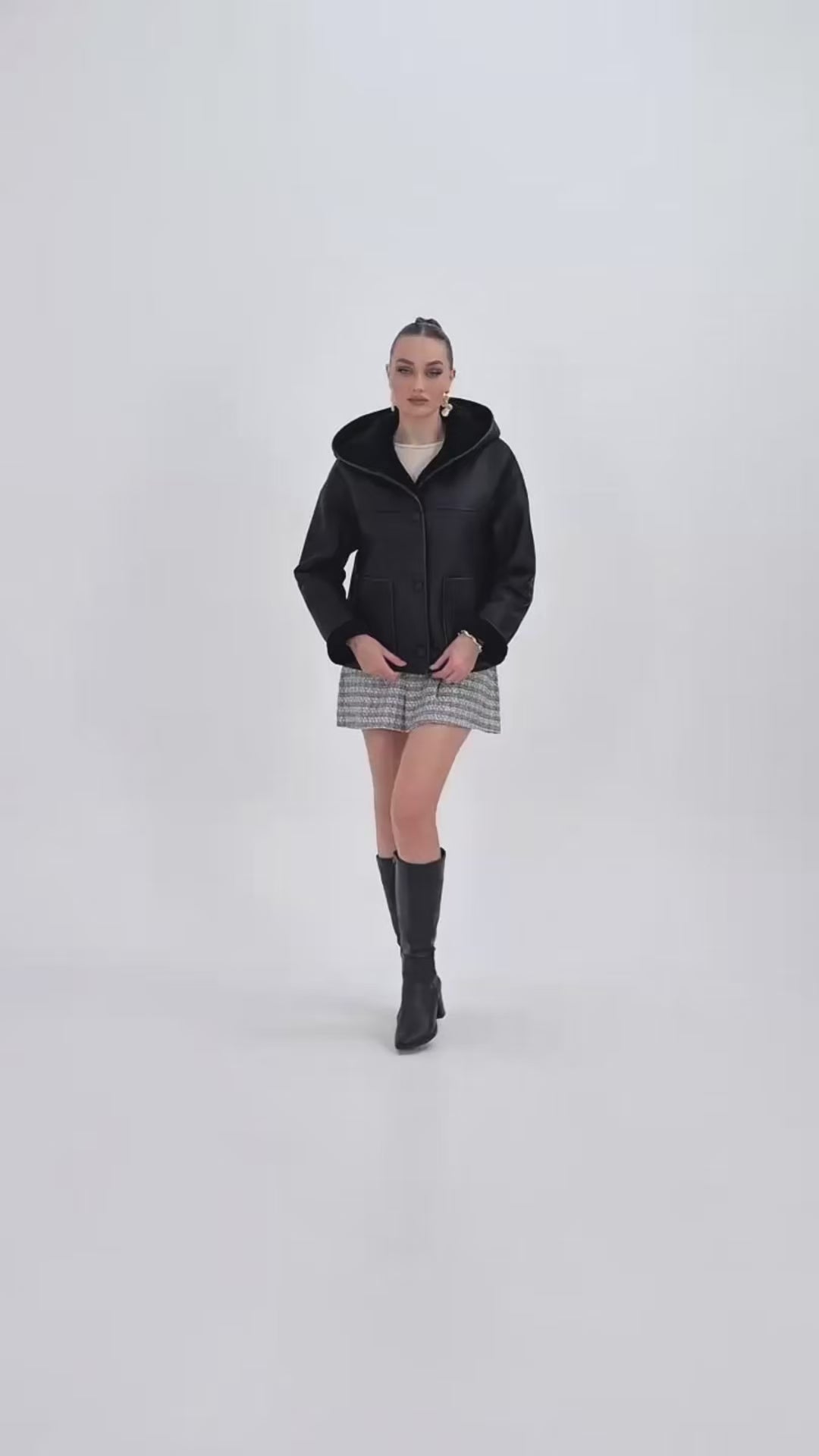 The oversized hood and minimalist silhouette offer a modern, chic edge — making Arlena your go-to statement jacket for both casual and elevated looks.