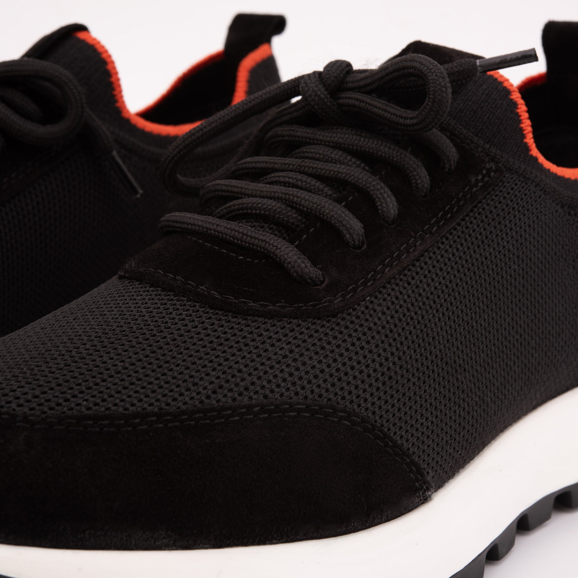 The Berlin Black Suede & Knit Men Sneaker is a perfect balance of craftsmanship and innovation. Expertly handcrafted, it merges the soft sophistication of suede leather with the flexibility and breathability of premium knit fabric.