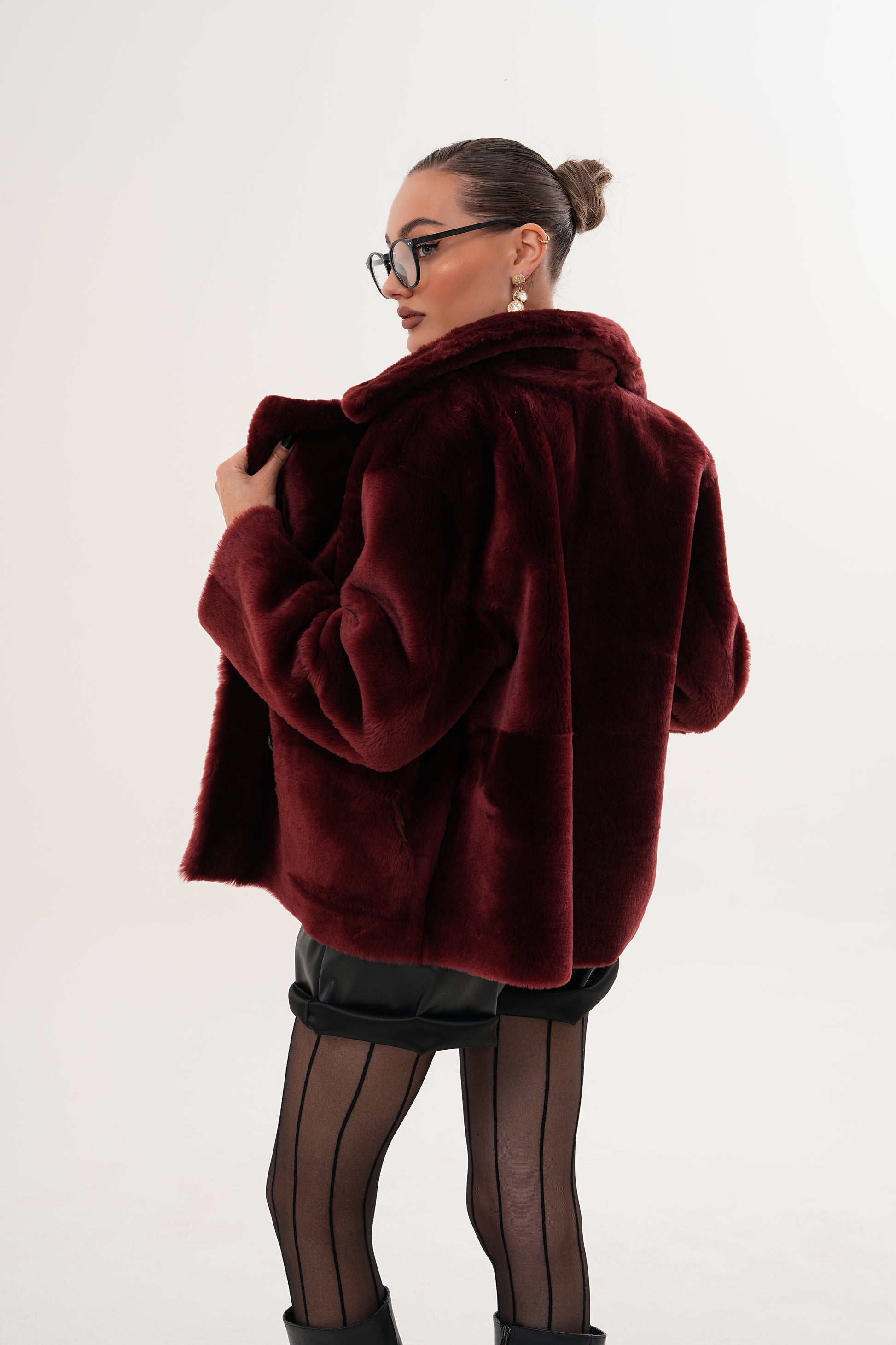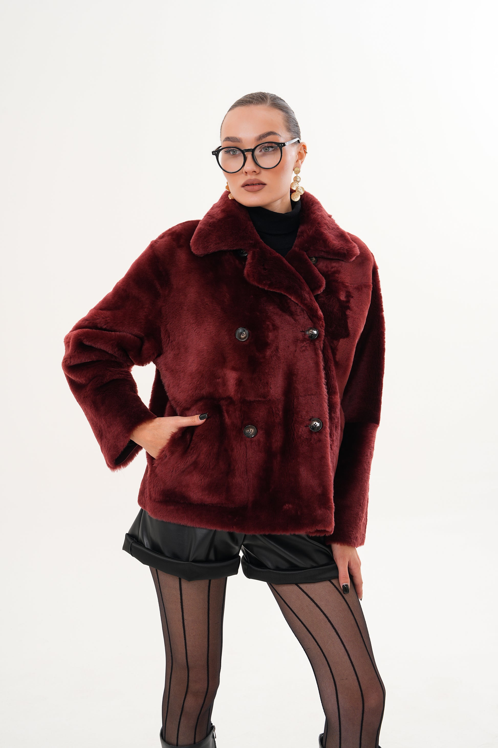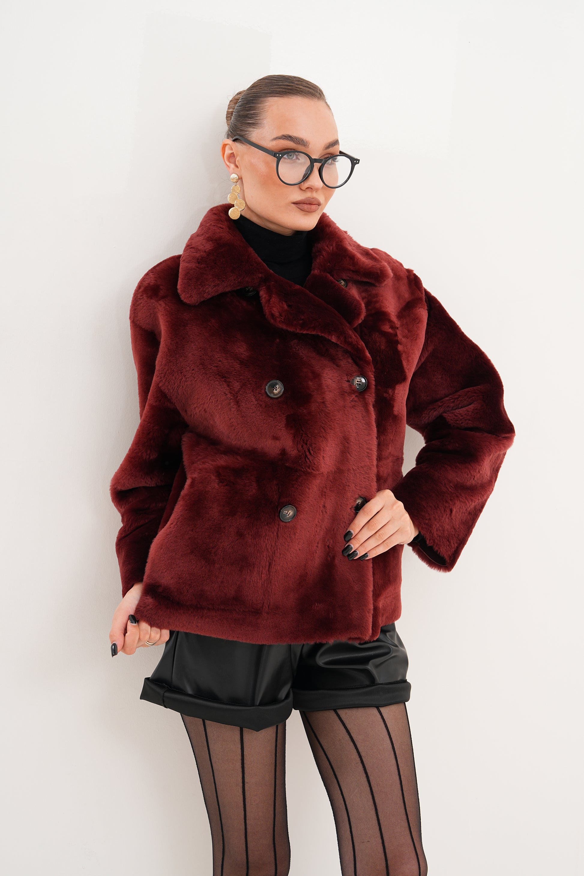 The Bordeaux Burgundy Reversible Shearling Leather Women Jacket