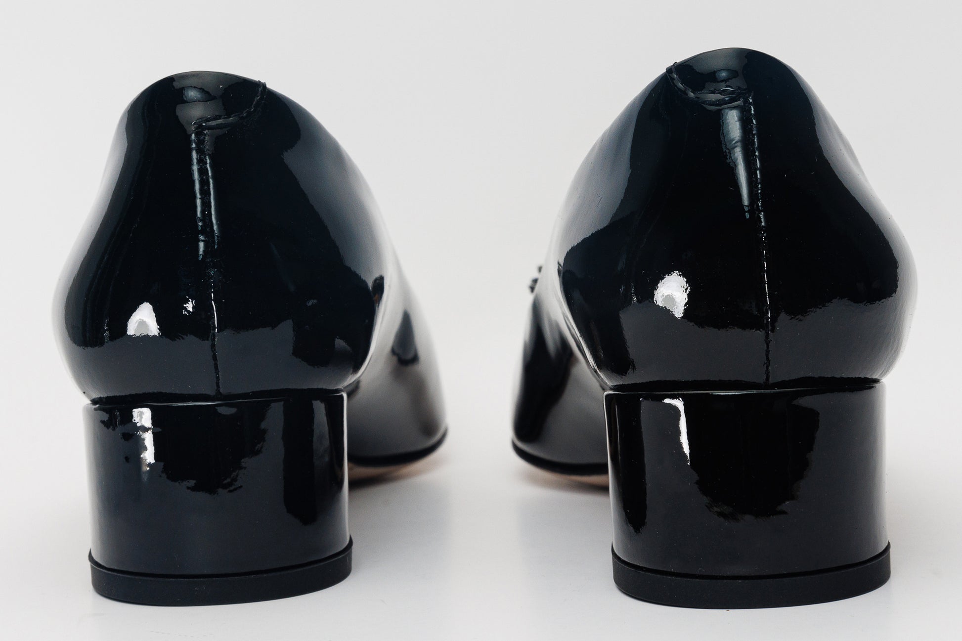 The Danish Black Patent Leather Block Heel Pump Women Shoe