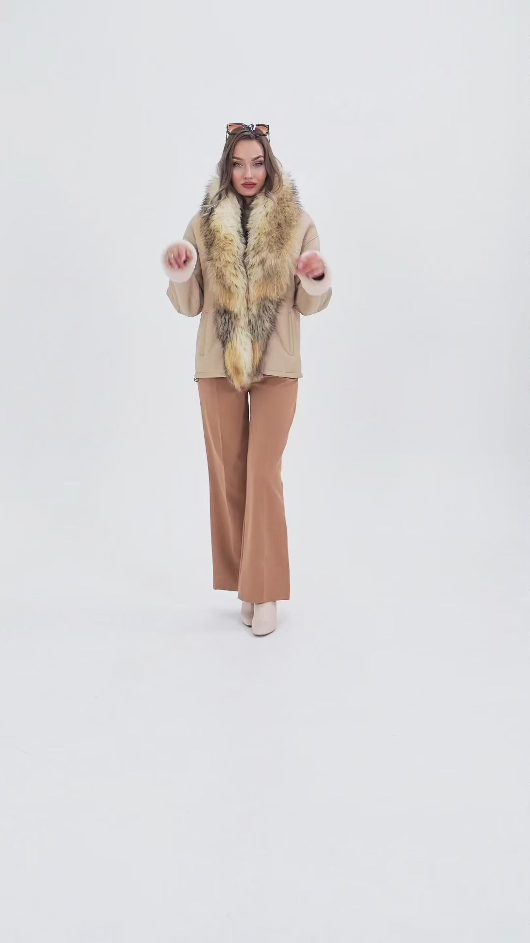 Color: Light Beige with Natural Fox-Tone Shearling Trim