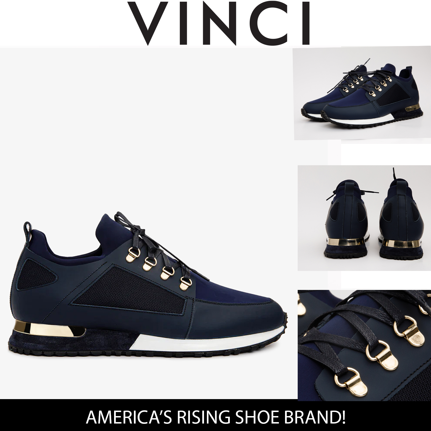 Navy Suede Leather Under Gold Accents: Beneath the gold accents, suede leather is applied to add a layer of uniqueness, creating a captivating contrast.