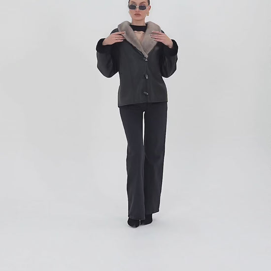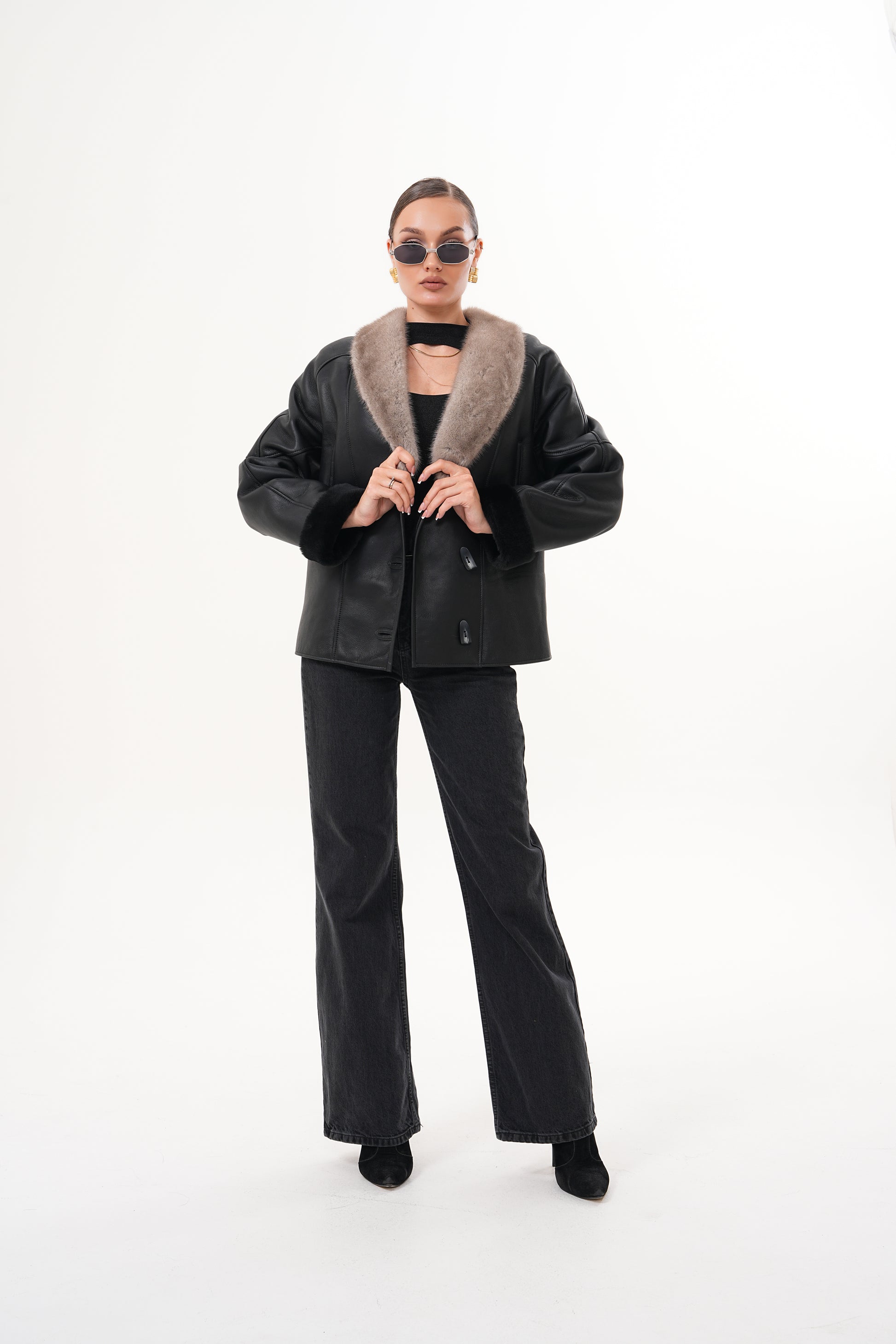 The Estelle Black & Beige Shearling Leather Women Jacket