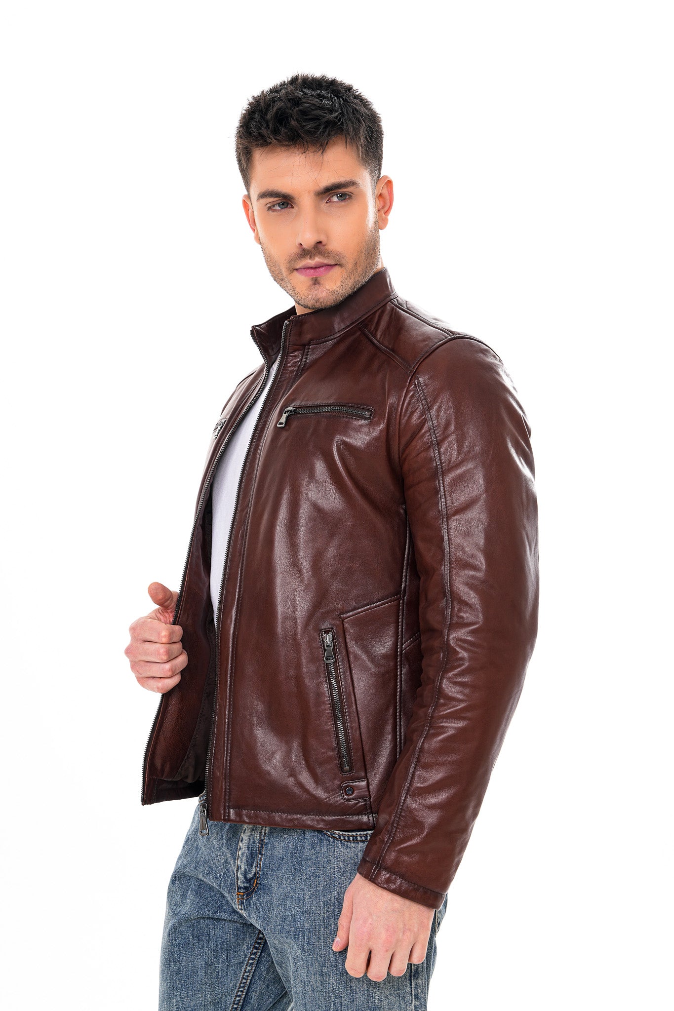 The Falcon Cognac Brown Smooth Leather Men Jacket