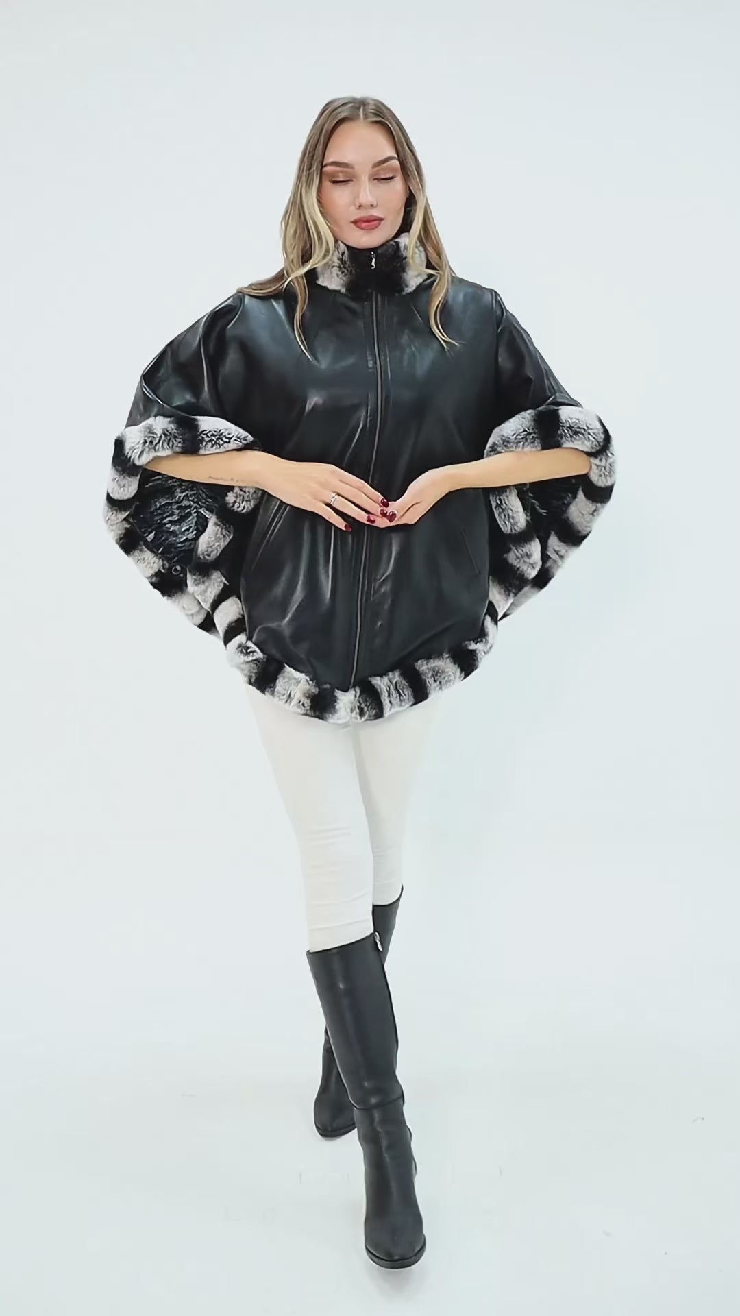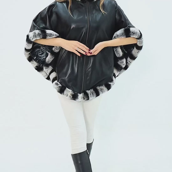 The Glacier Black Reversible Leather Women Cape