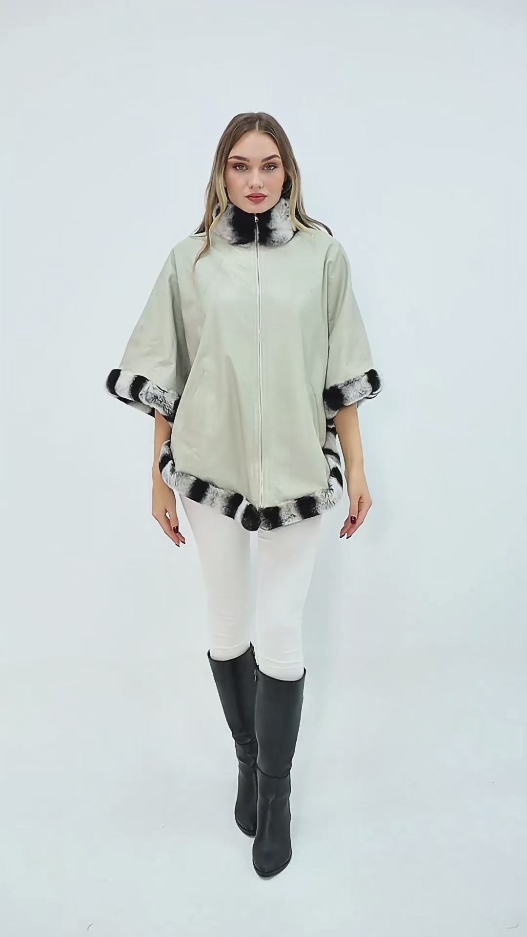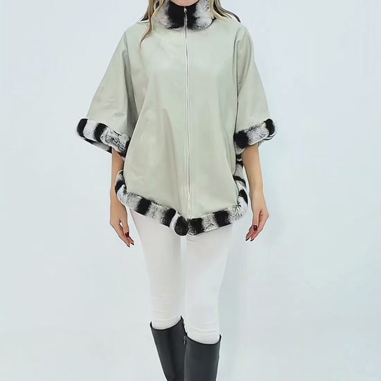 The Glacier Light Beige Reversible Leather Women Cape