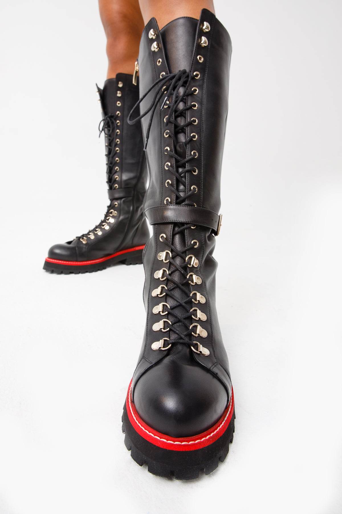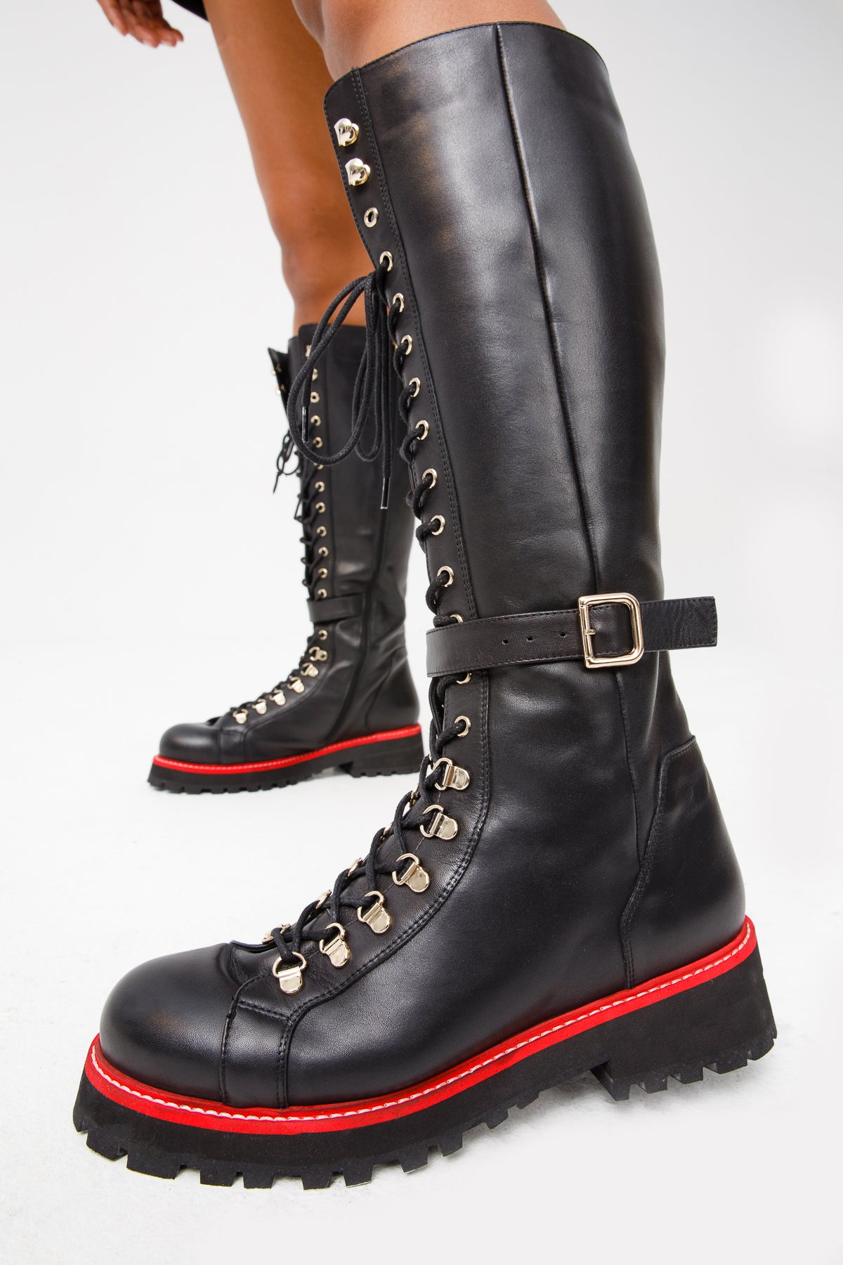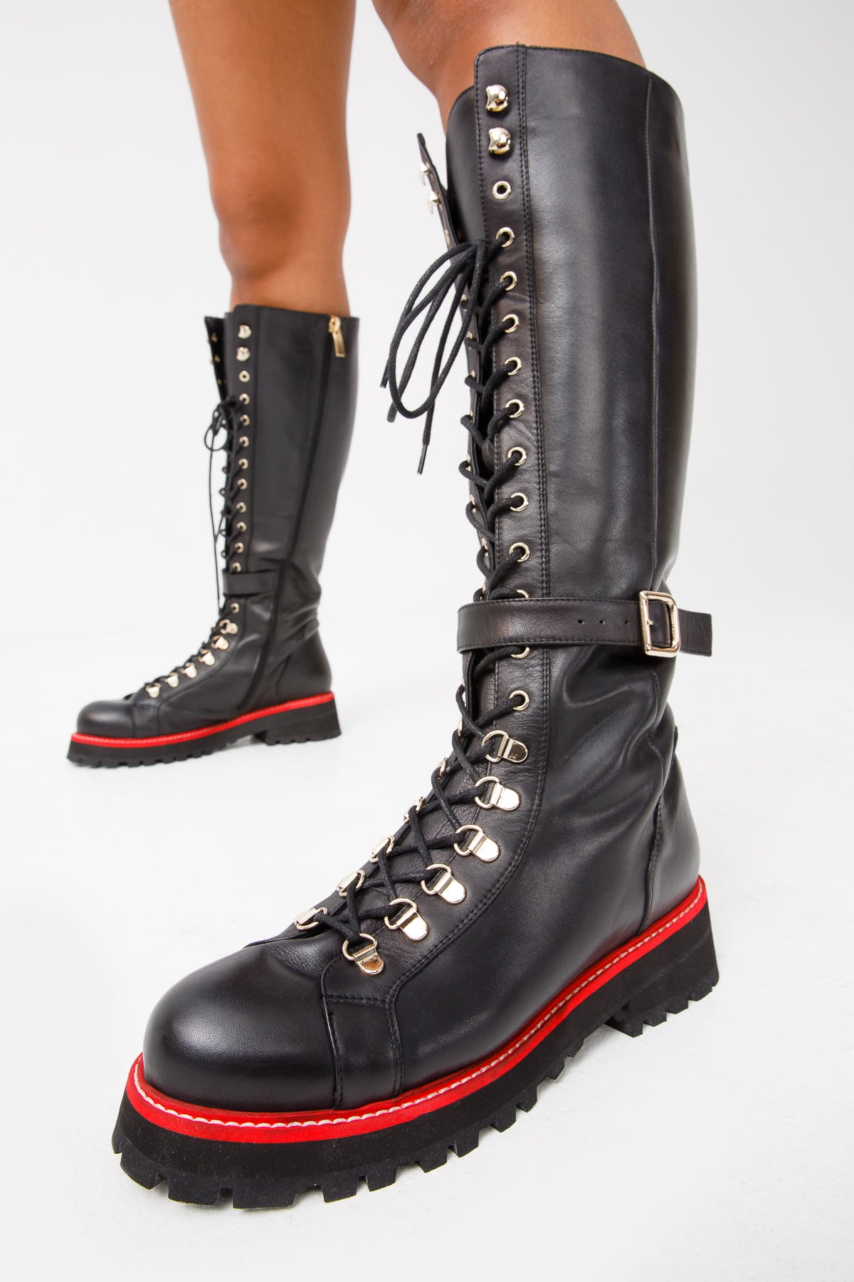 The Istinye Black Leather Knee High Lace-Up Women Boot Limited Edition