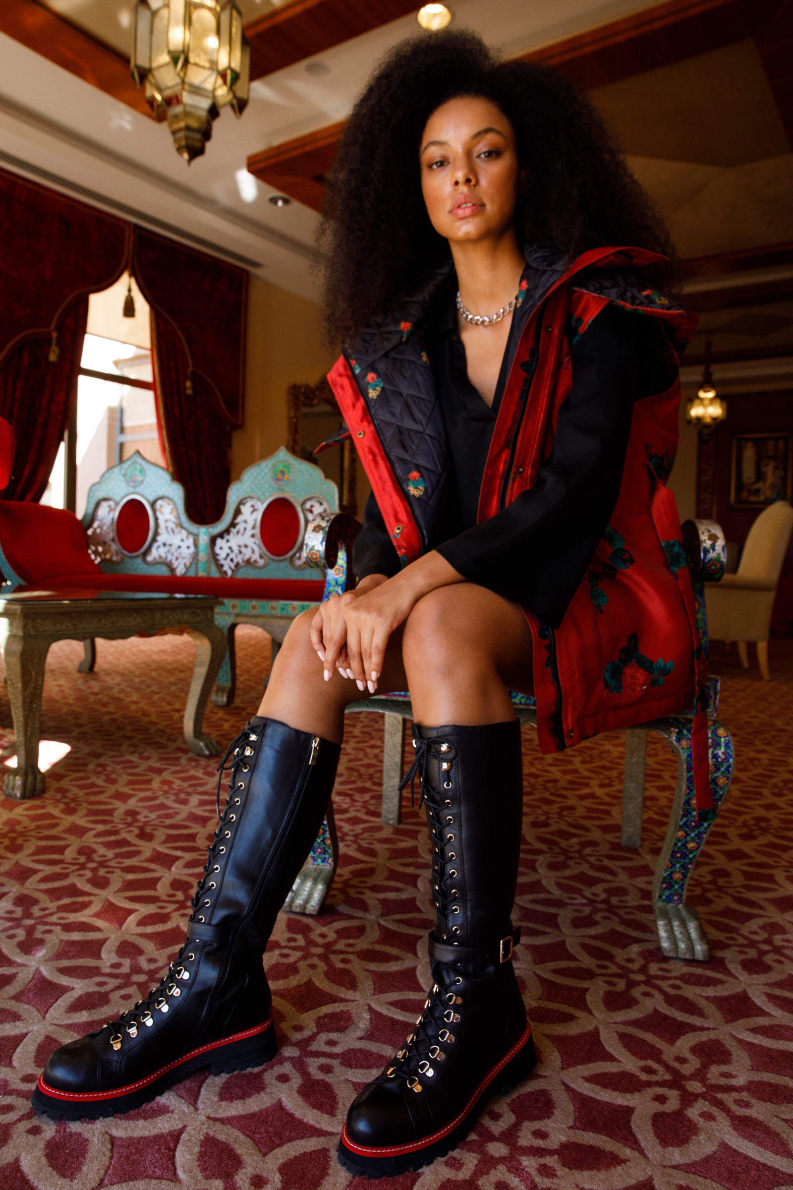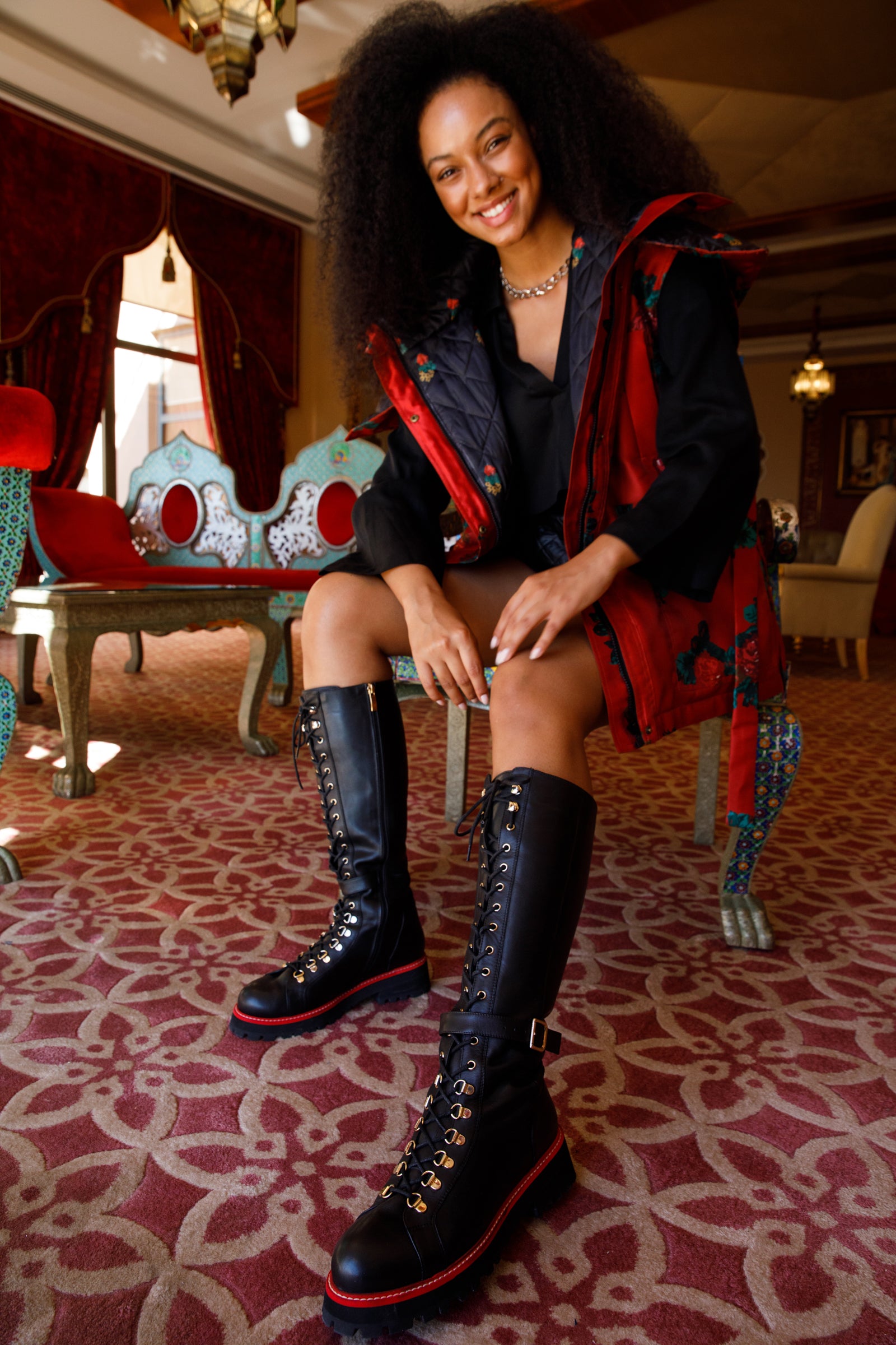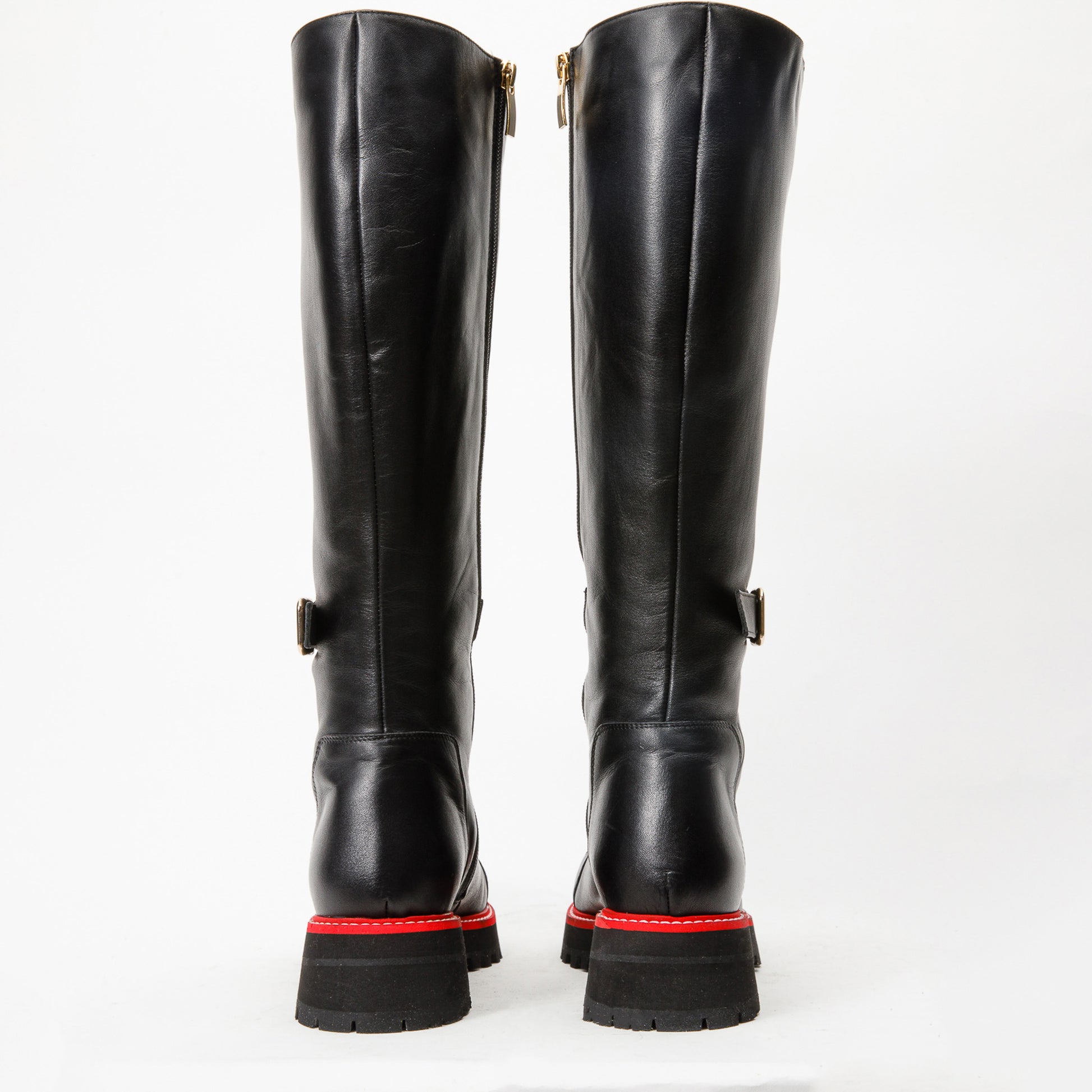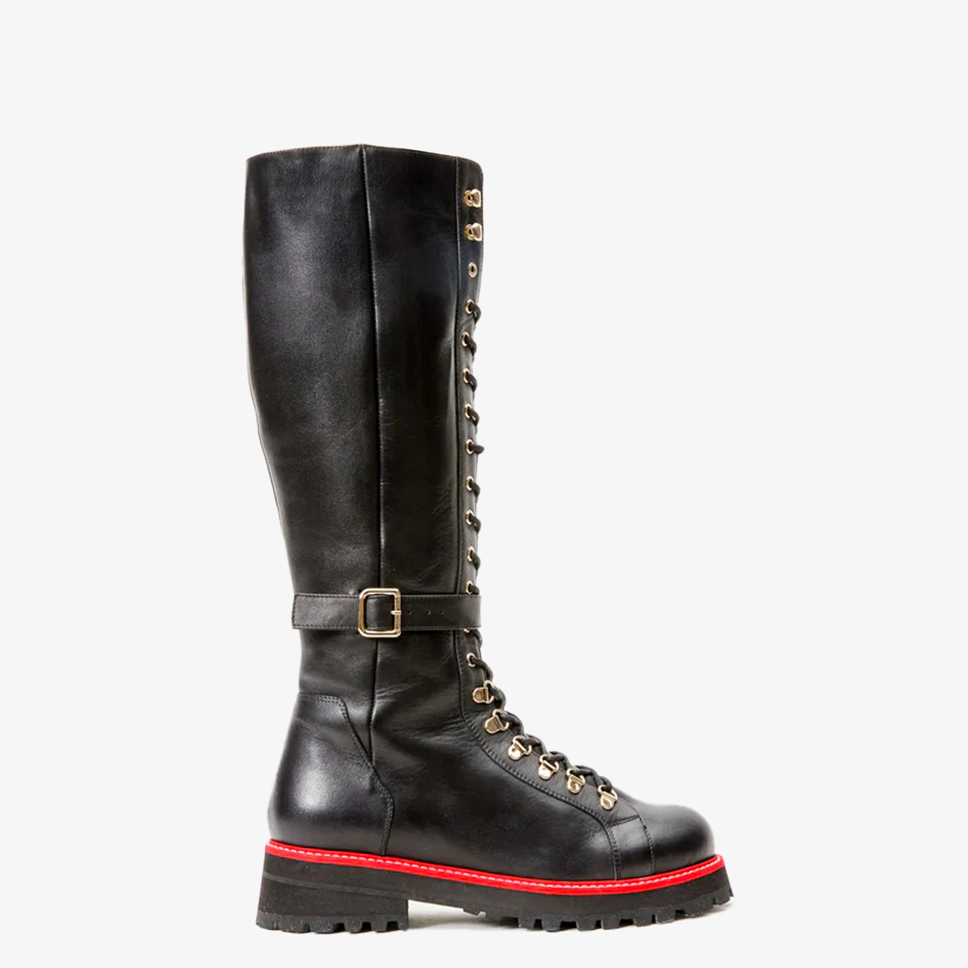 The Istinye Black Leather Knee High Lace-Up Women Boot Limited Edition